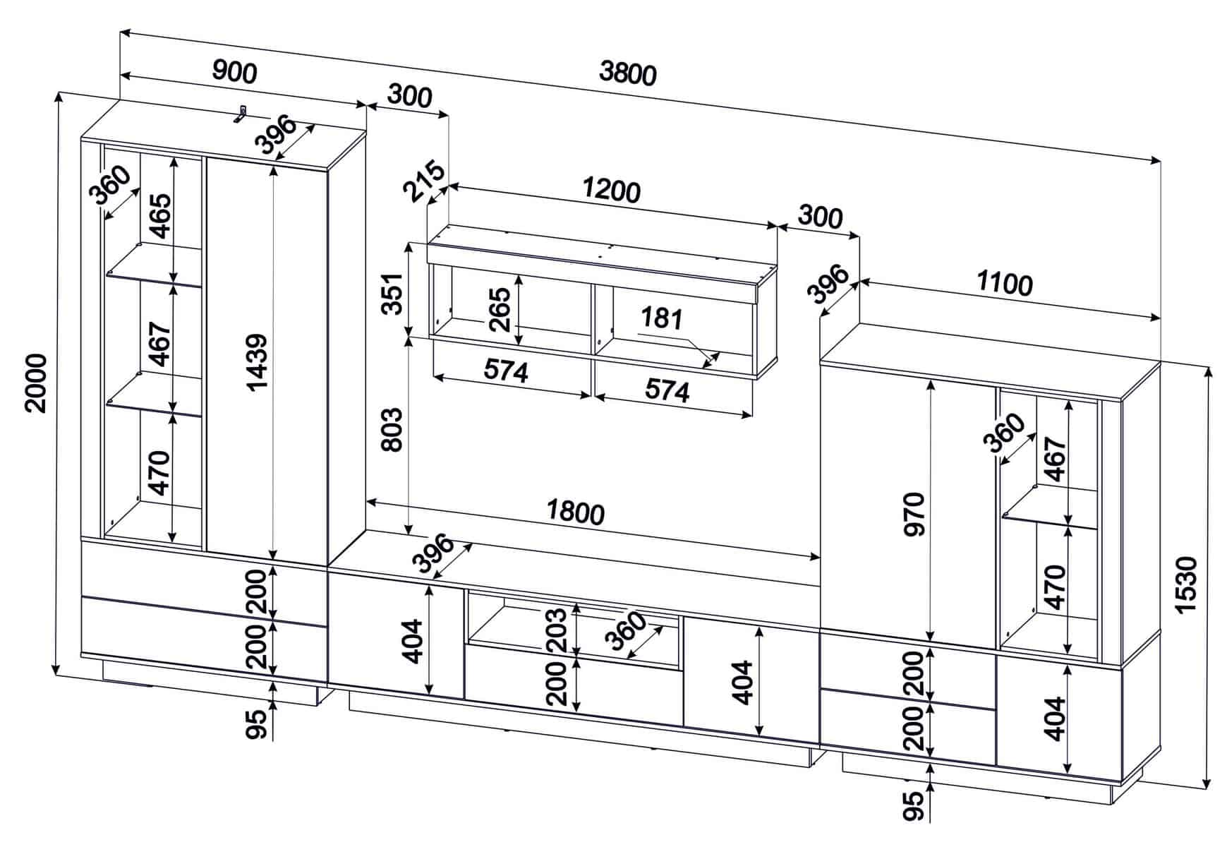- Тумба (ТВ) Quartz QZ-Т180; 1800x541x396
