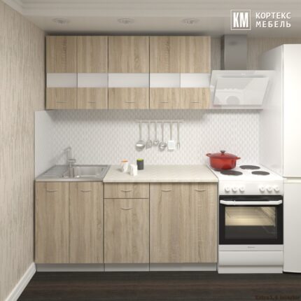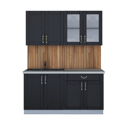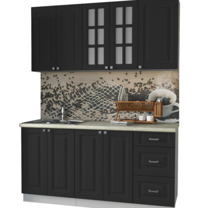 Кухня не имеет цоколя, впереди устанавливаются декоративные опоры.