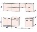 - Высота нижних шкафов: 850 мм