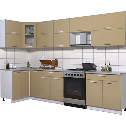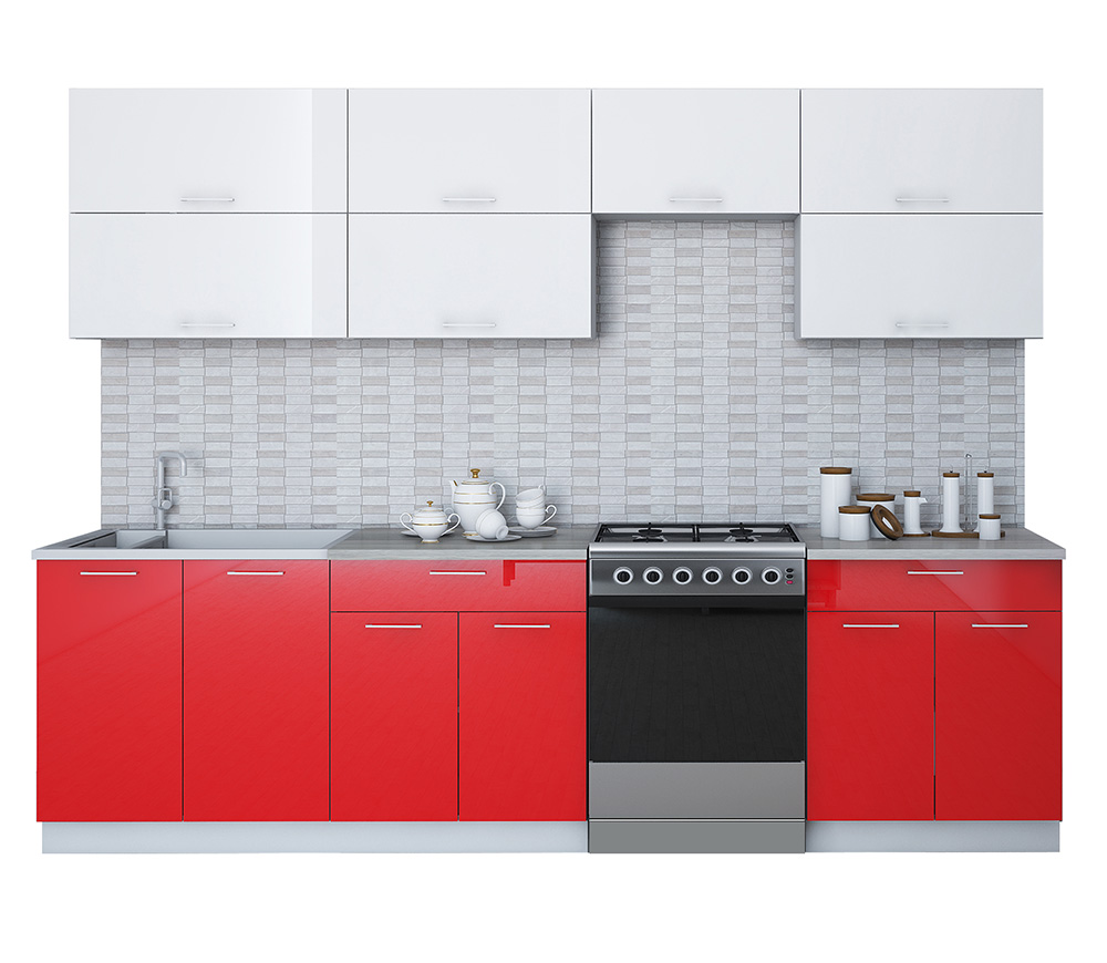 Кухня модульная. Все шкафы отдельностоящие, их можно менять между собой местами. Дополнительно можно приобрести шкафы под вытяжку (500мм или 600мм), встраиваемую духовку или варочную панель, пенал кухонный а так же любой другой шкаф из серии Мила Глосс. Кроме того, комплекты можно полностью собрать модульно, только из тех элементов, которые вам подходят.