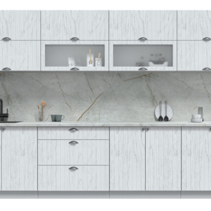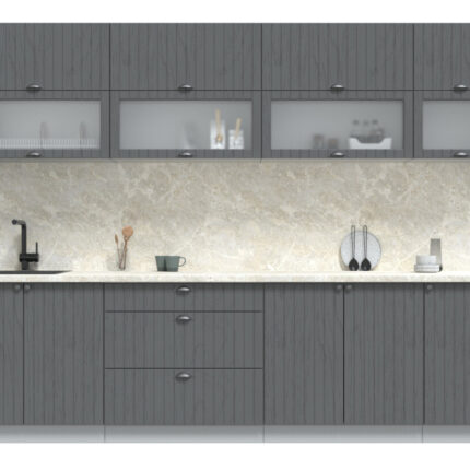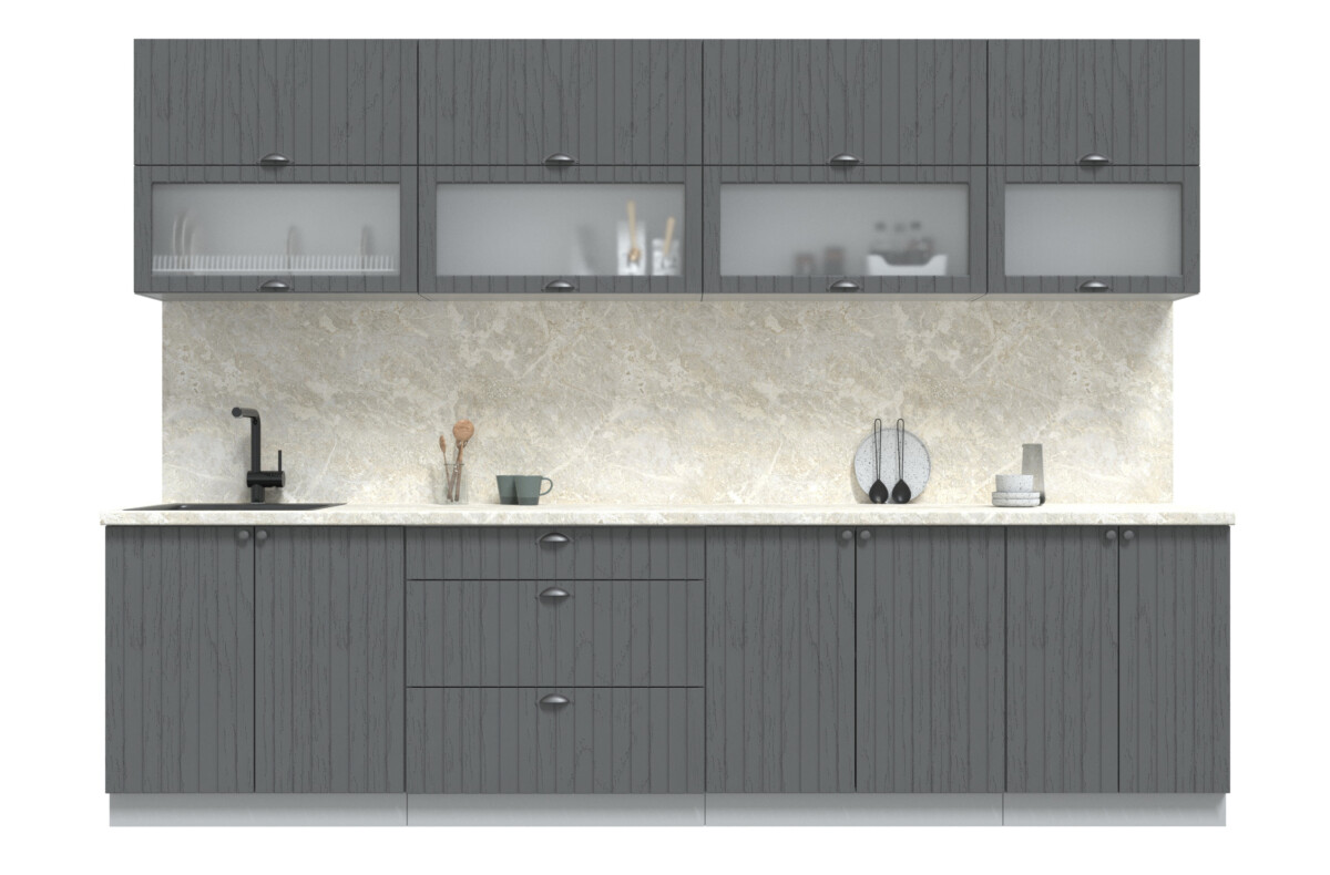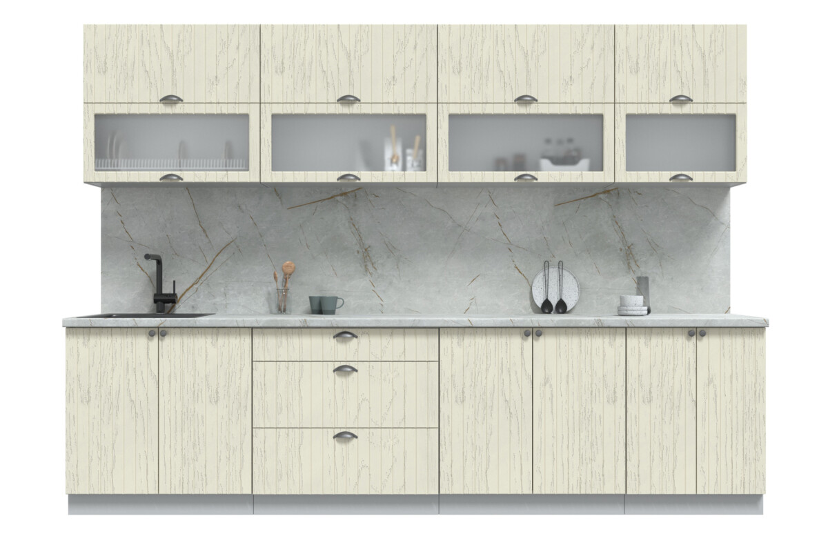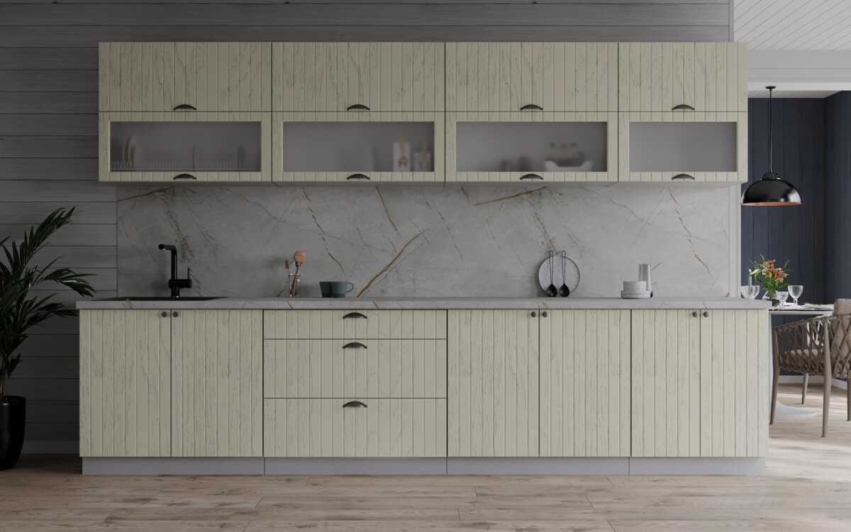 Кухня модульная. Все шкафы отдельностоящие, их можно менять между собой местами. Дополнительно можно приобрести шкафы под вытяжку (500мм или 600мм), встраиваемую духовку или варочную панель, пенал кухонный а так же любой другой шкаф из серии Мила Берес. Кроме того, комплекты можно полностью собрать модульно, только из тех элементов, которые вам подходят.