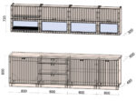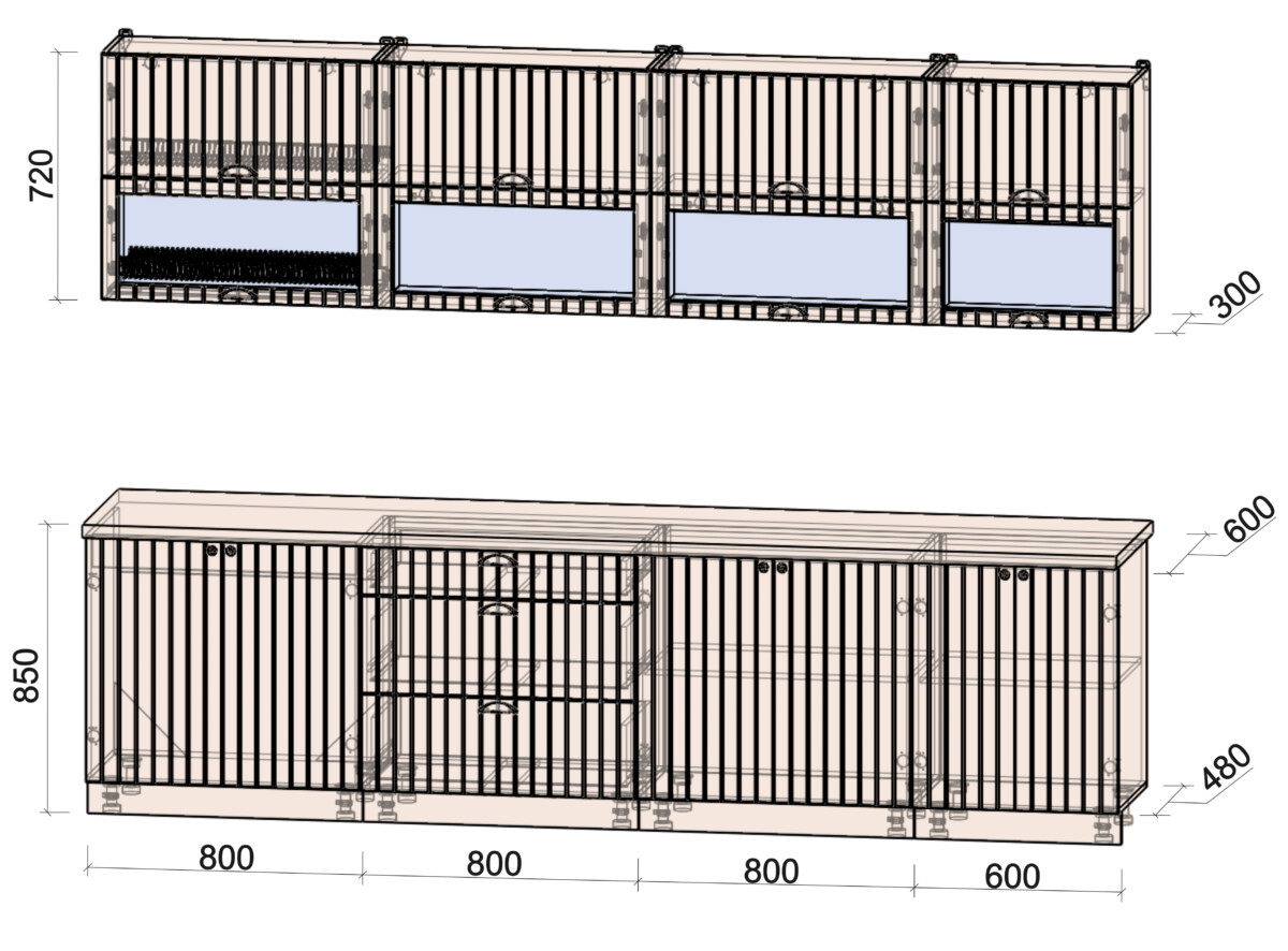 - Высота верхних шкафов: 720 мм