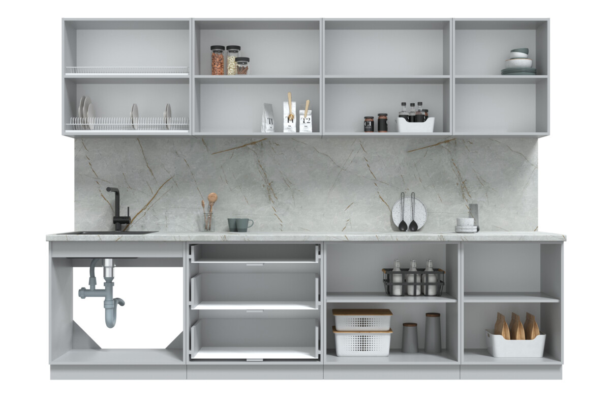 - Высота нижних шкафов: 850 мм