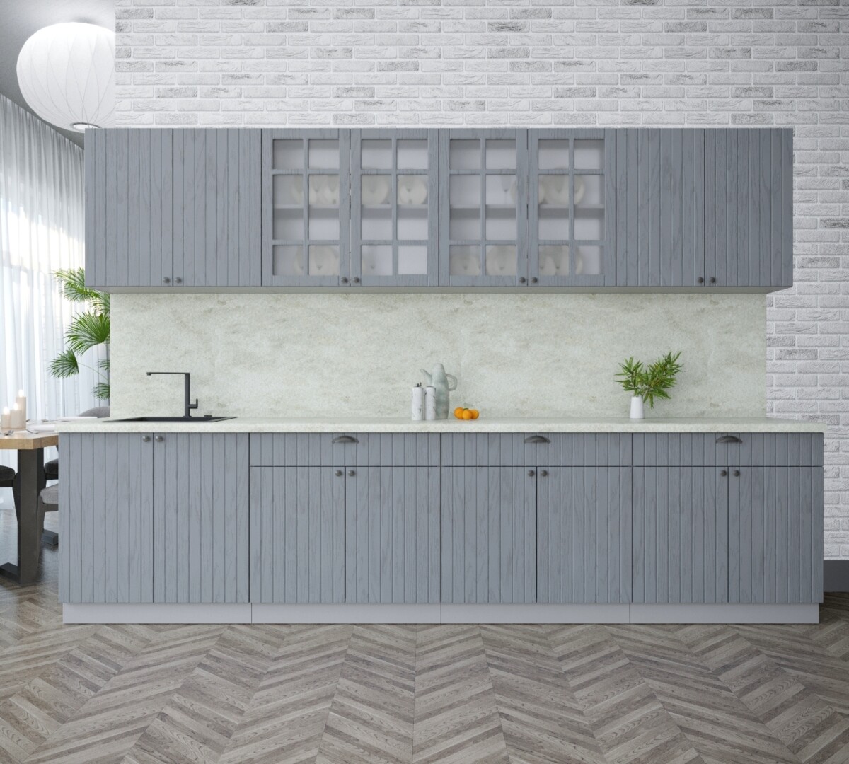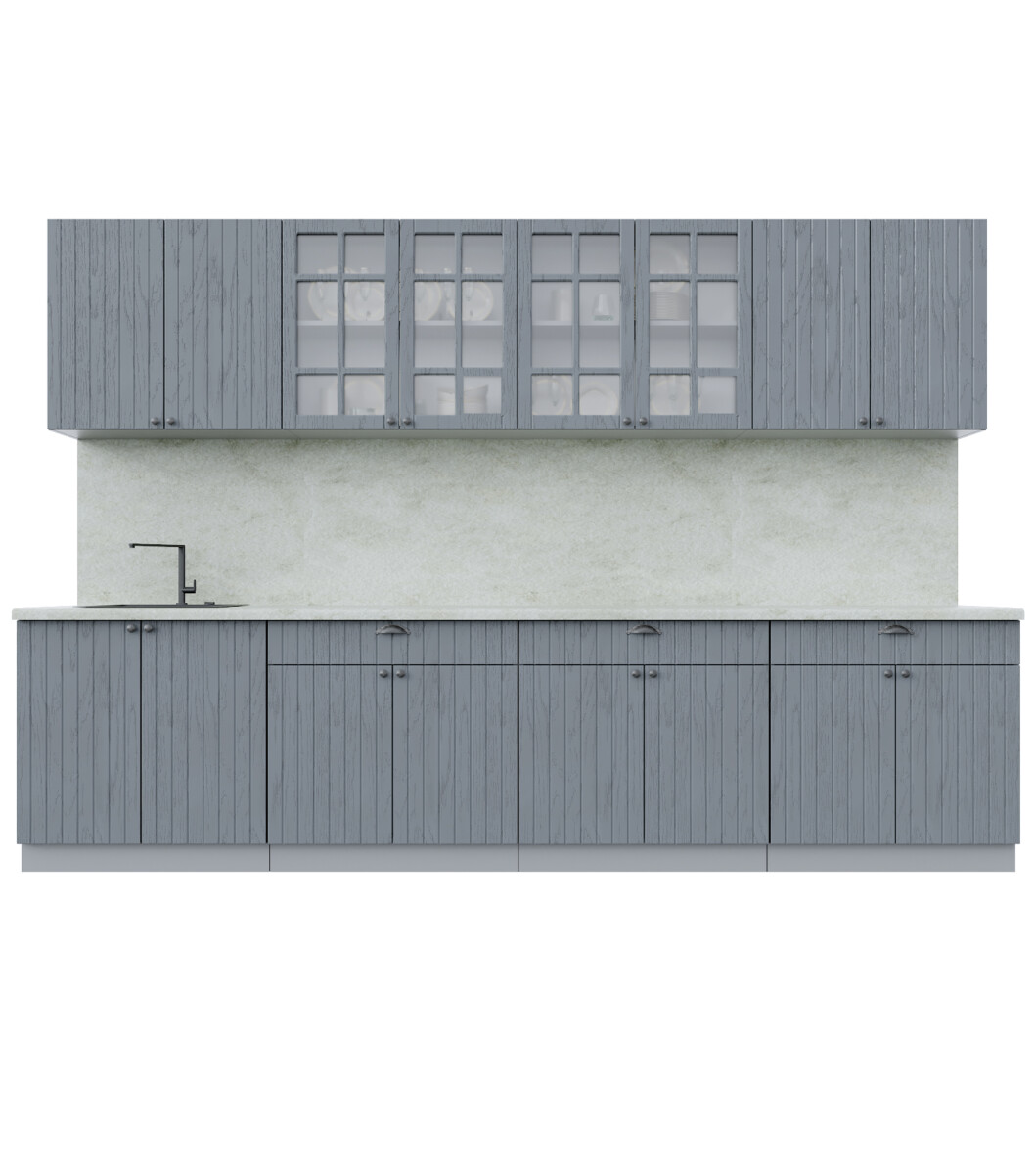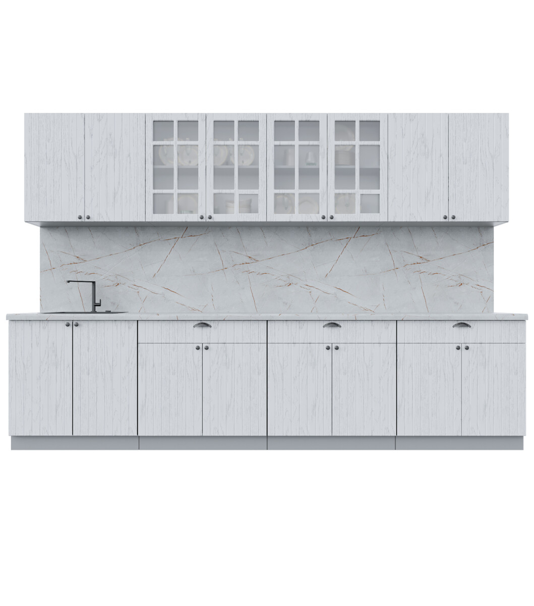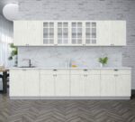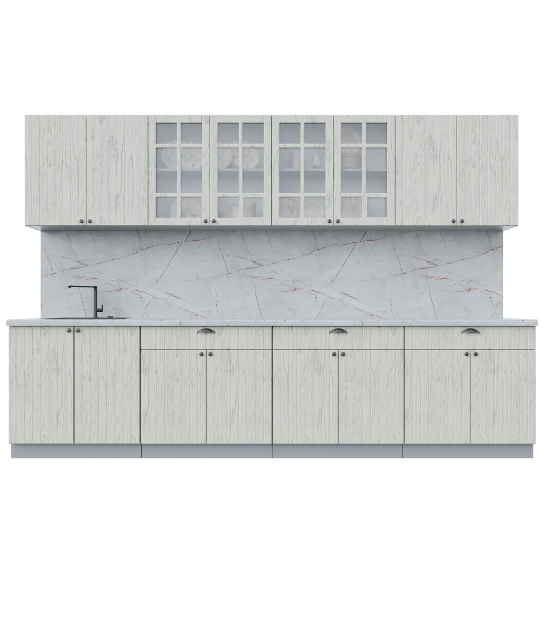 Кухня модульная. Все шкафы отдельностоящие, их можно менять между собой местами. Дополнительно можно приобрести шкафы под вытяжку (500мм или 600мм), встраиваемую духовку или варочную панель, пенал кухонный а так же любой другой шкаф из серии Мила Берес. Кроме того, комплекты можно полностью собрать модульно, только из тех элементов, которые вам подходят.