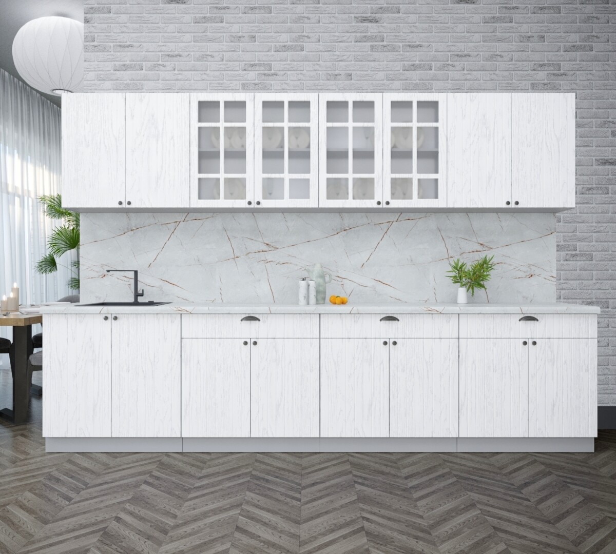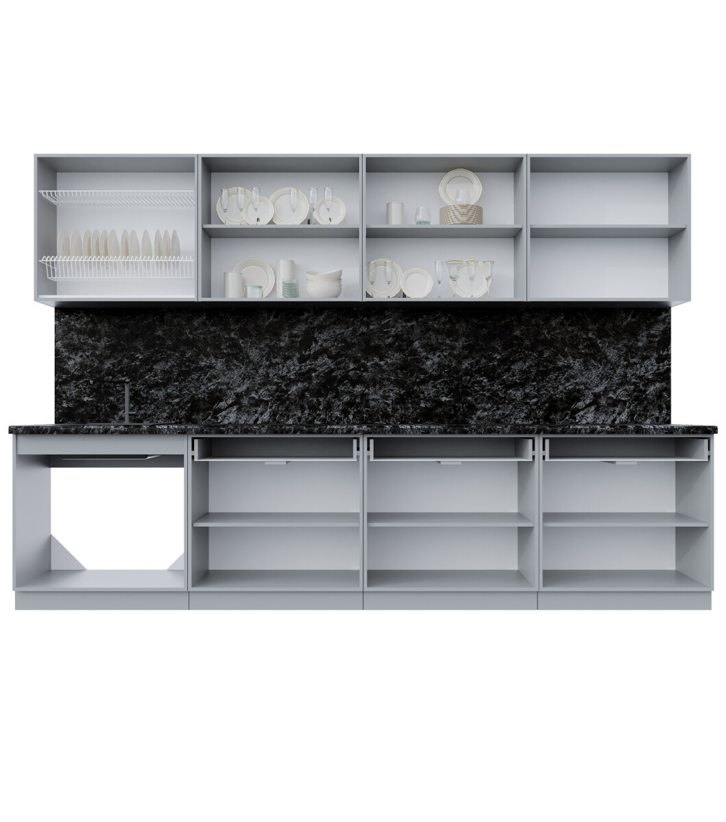 - Высота нижних шкафов: 850 мм