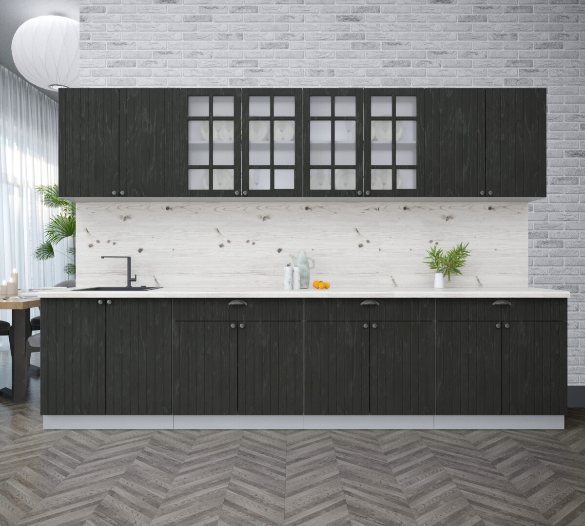 - Глубина верхних шкафов: 300 мм