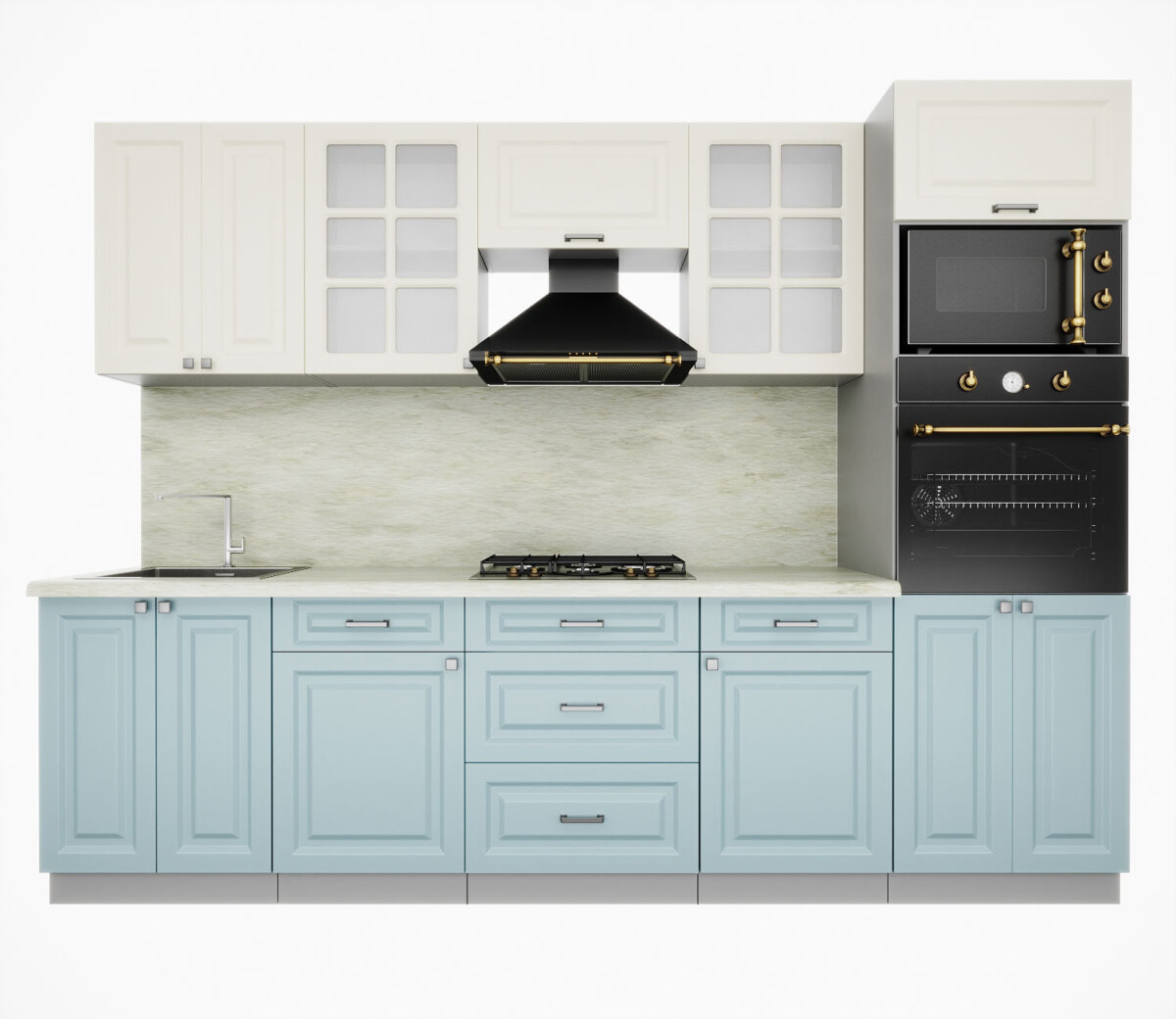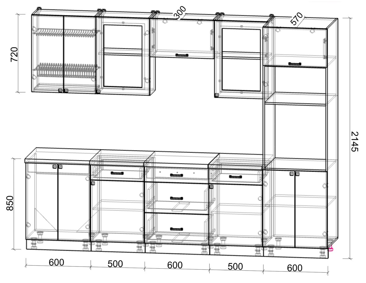 - Высота нижних шкафов: 850 мм
