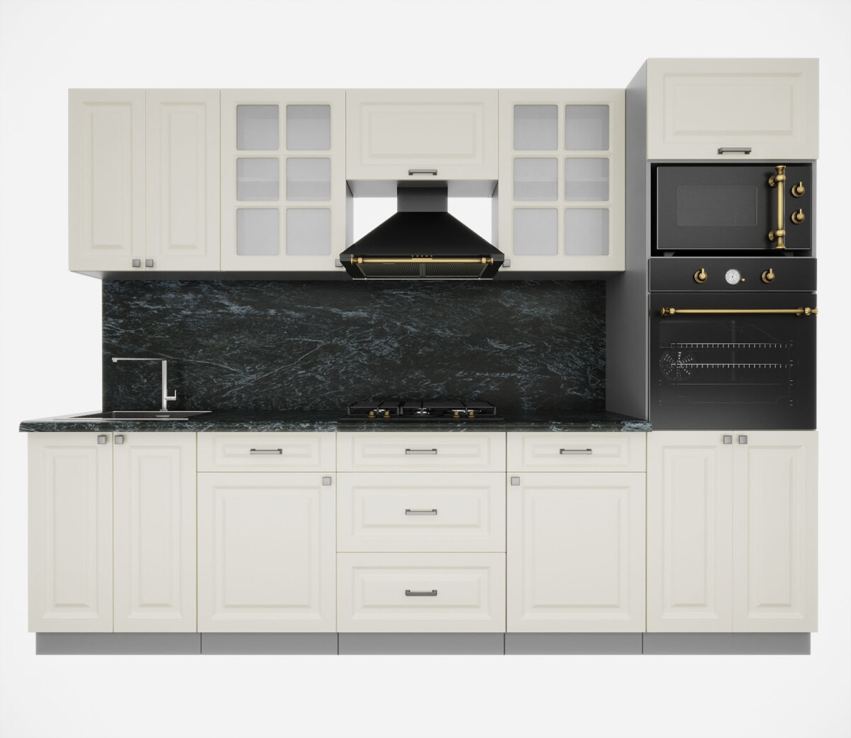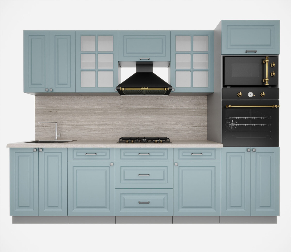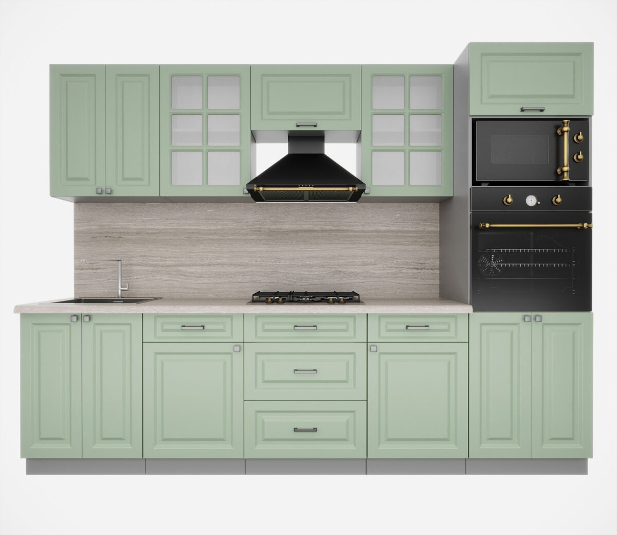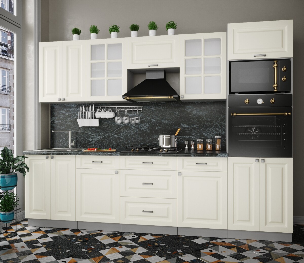 Особенность фасадов кухни: фасад с витриной, фрезеровка «шпрос».