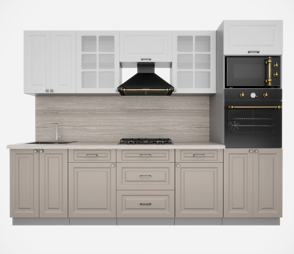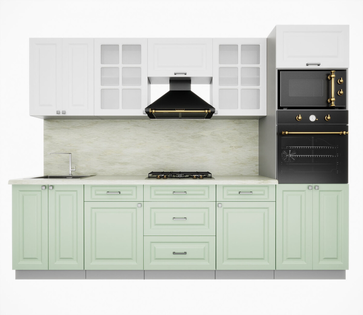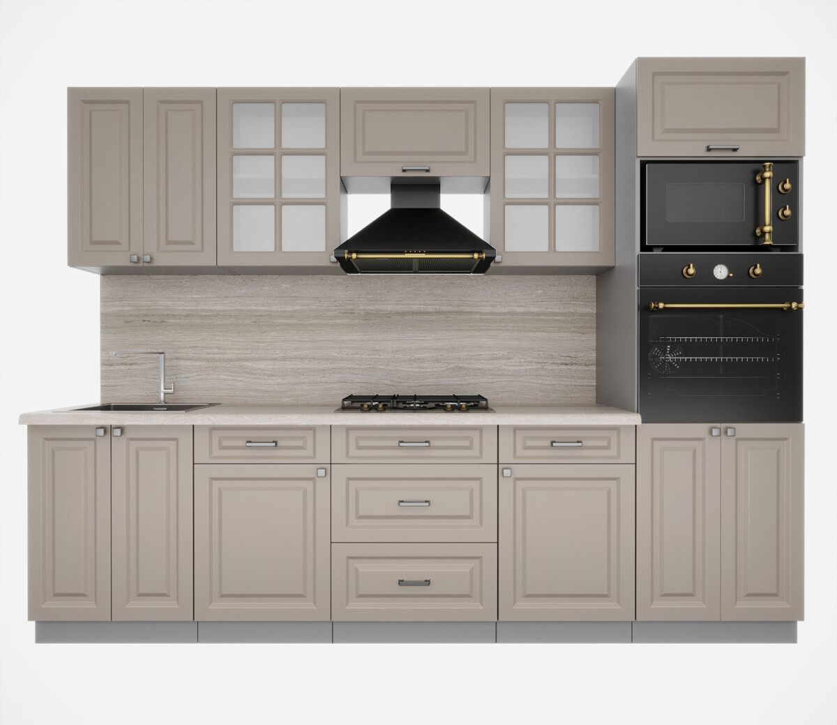 Кухня модульная. Все шкафы отдельностоящие, их можно менять между собой местами. Дополнительно можно приобрести шкафы под вытяжку (500мм или 600мм), встраиваемую духовку или варочную панель, пенал кухонный а так же любой другой шкаф из серии Мила Деко. Кроме того, комплекты можно полностью собрать модульно, только из тех элементов, которые вам подходят.