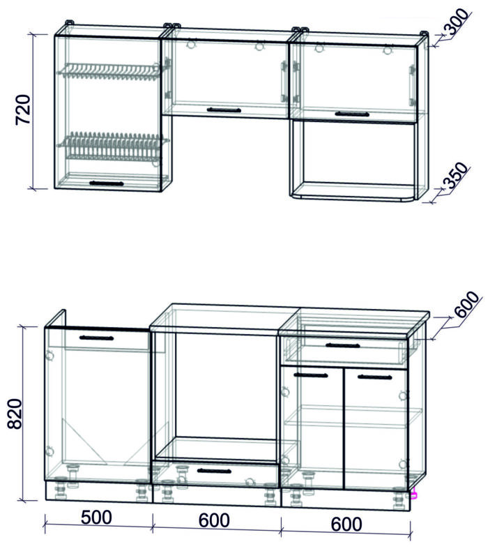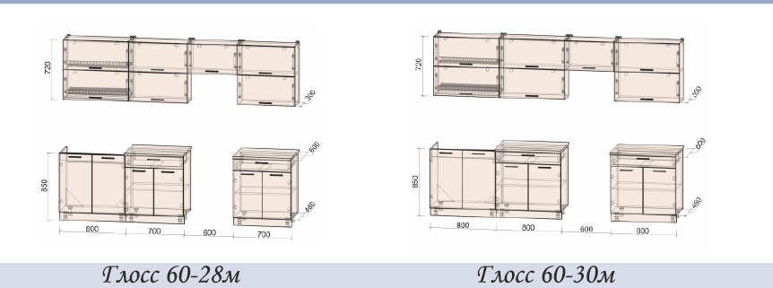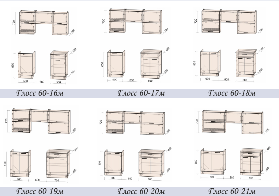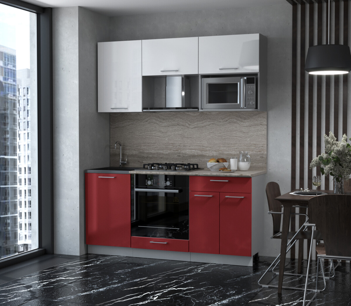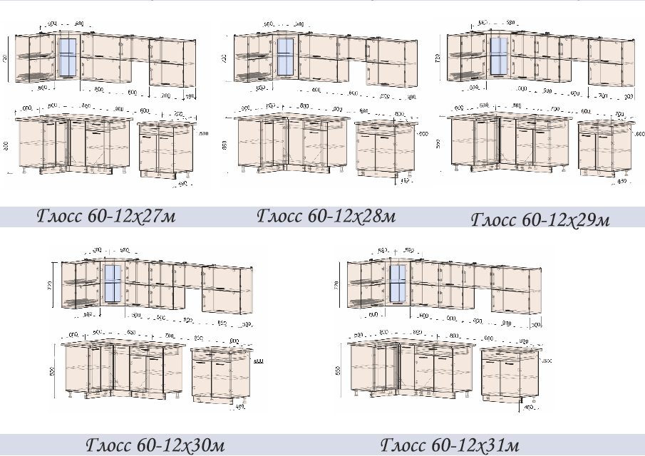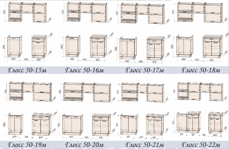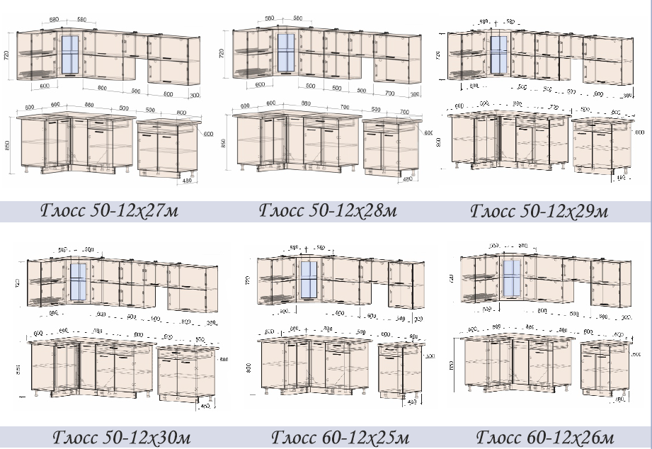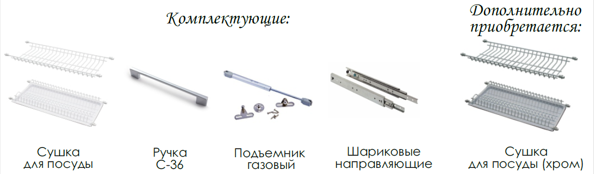 Кухня модульная. Все шкафы отдельностоящие, их можно менять между собой местами. Дополнительно можно приобрести шкафы под вытяжку (500мм или 600мм), встраиваемую духовку или варочную панель, пенал кухонный а так же любой другой шкаф из серии Мила Глосс. Кроме того, комплекты можно полностью собрать модульно, только из тех элементов, которые вам подходят.
