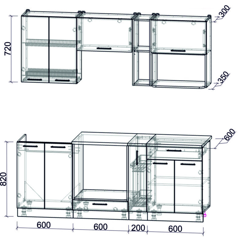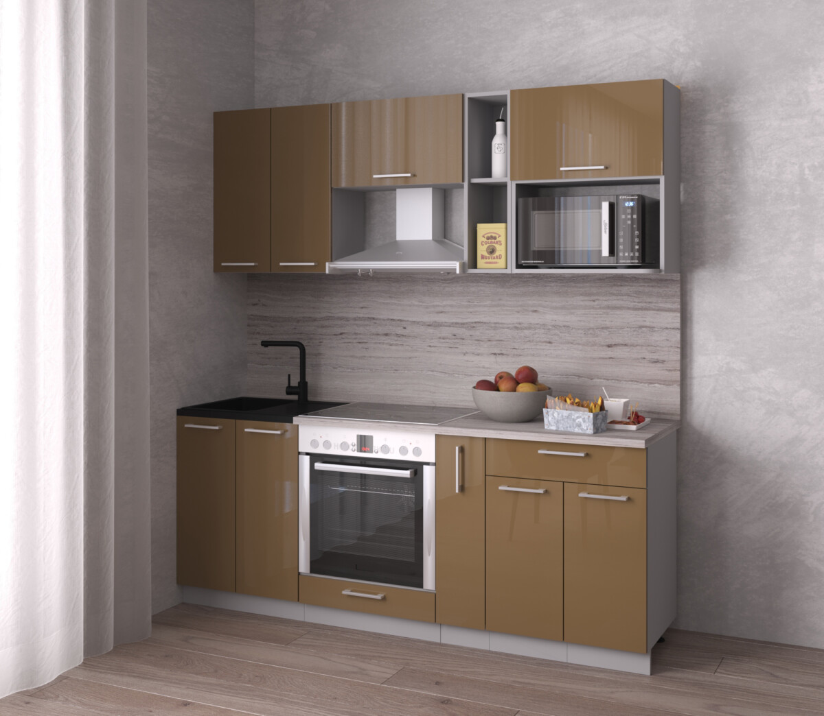 Кухня модульная. Все шкафы отдельностоящие, их можно менять между собой местами. Дополнительно можно приобрести шкафы под вытяжку (500мм или 600мм), встраиваемую духовку или варочную панель, пенал кухонный а так же любой другой шкаф из серии Мила Глосс. Кроме того, комплекты можно полностью собрать модульно, только из тех элементов, которые вам подходят.