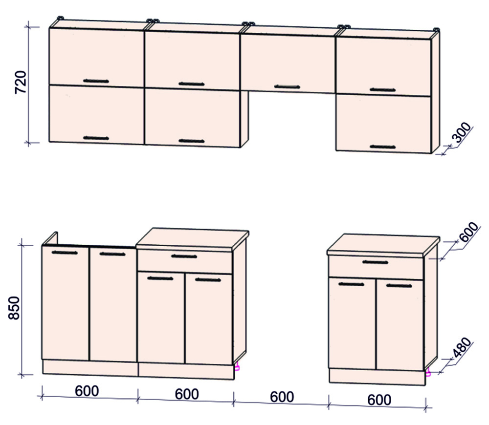 Кухня модульная. Все шкафы отдельностоящие, их можно менять между собой местами. Дополнительно можно приобрести шкафы под вытяжку (500мм или 600мм), встраиваемую духовку или варочную панель, пенал кухонный а так же любой другой шкаф из серии Мила Глосс. Кроме того, комплекты можно полностью собрать модульно, только из тех элементов, которые вам подходят.