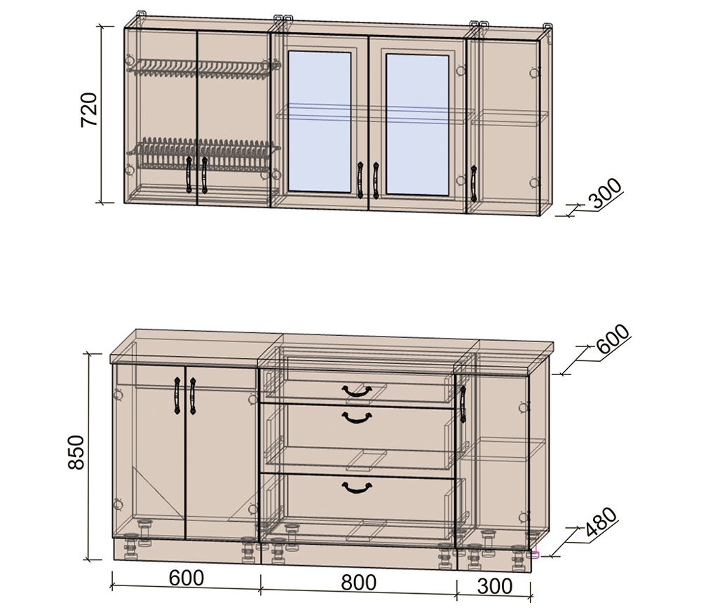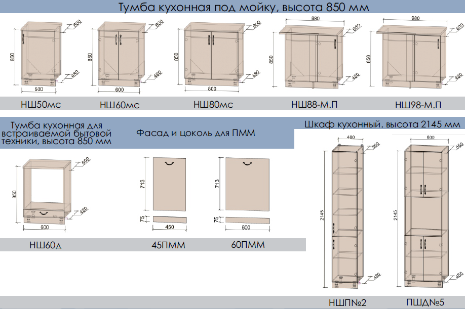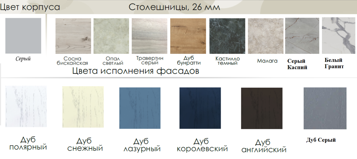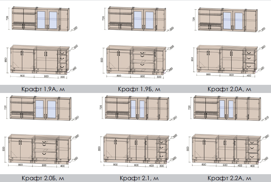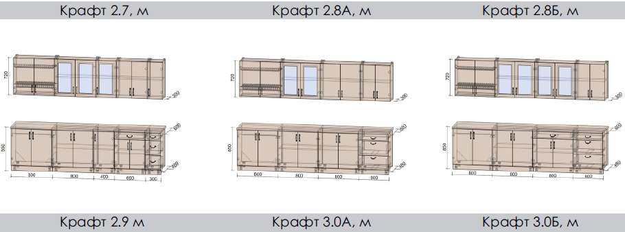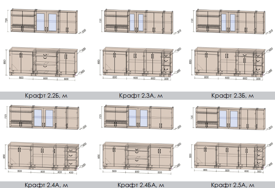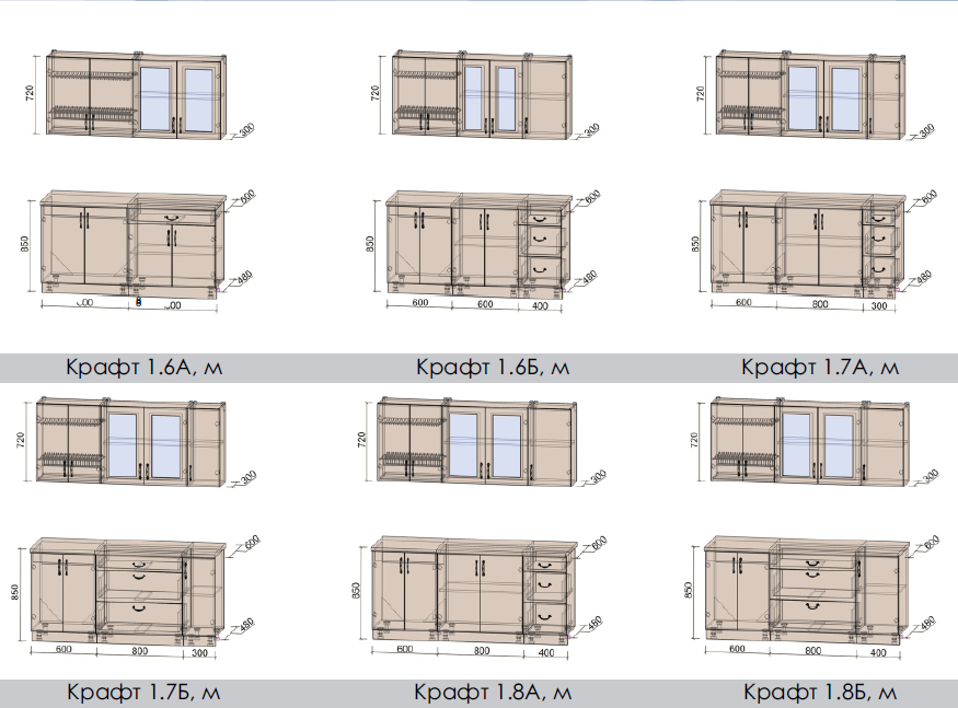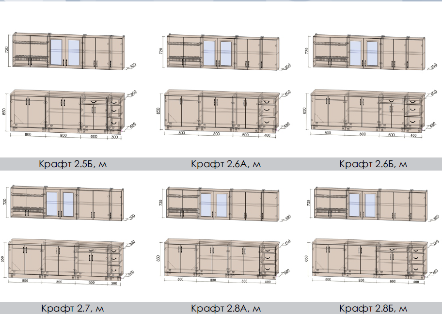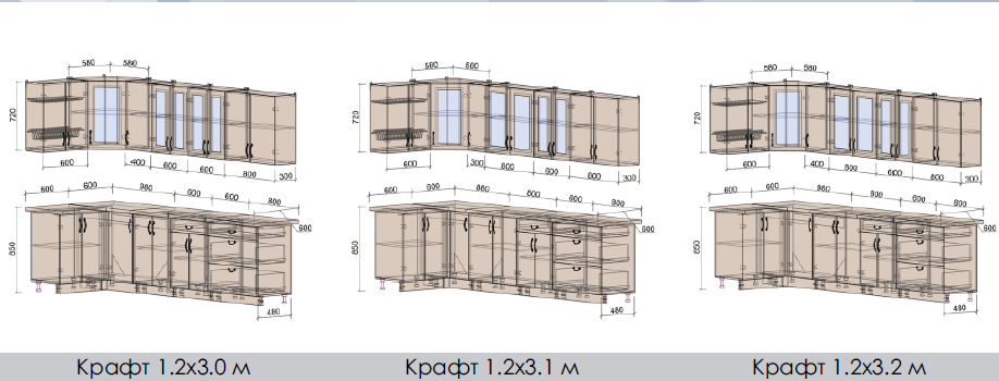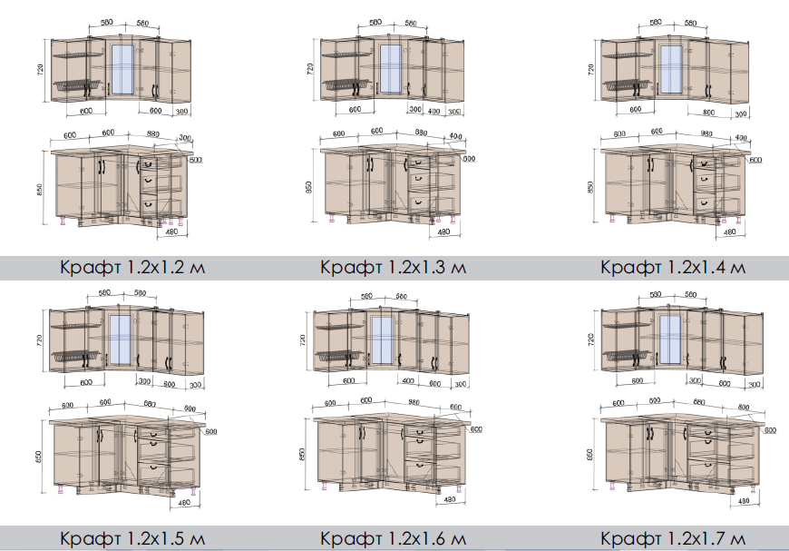 Кухня модульная. Все шкафы отдельностоящие, их можно менять между собой местами. Дополнительно можно приобрести шкафы под вытяжку (500мм или 600мм), встраиваемую духовку или варочную панель, пенал кухонный а так же любой другой шкаф из серии Мила Крафт. Кроме того, комплекты можно полностью собрать модульно, только из тех элементов, которые вам подходят.