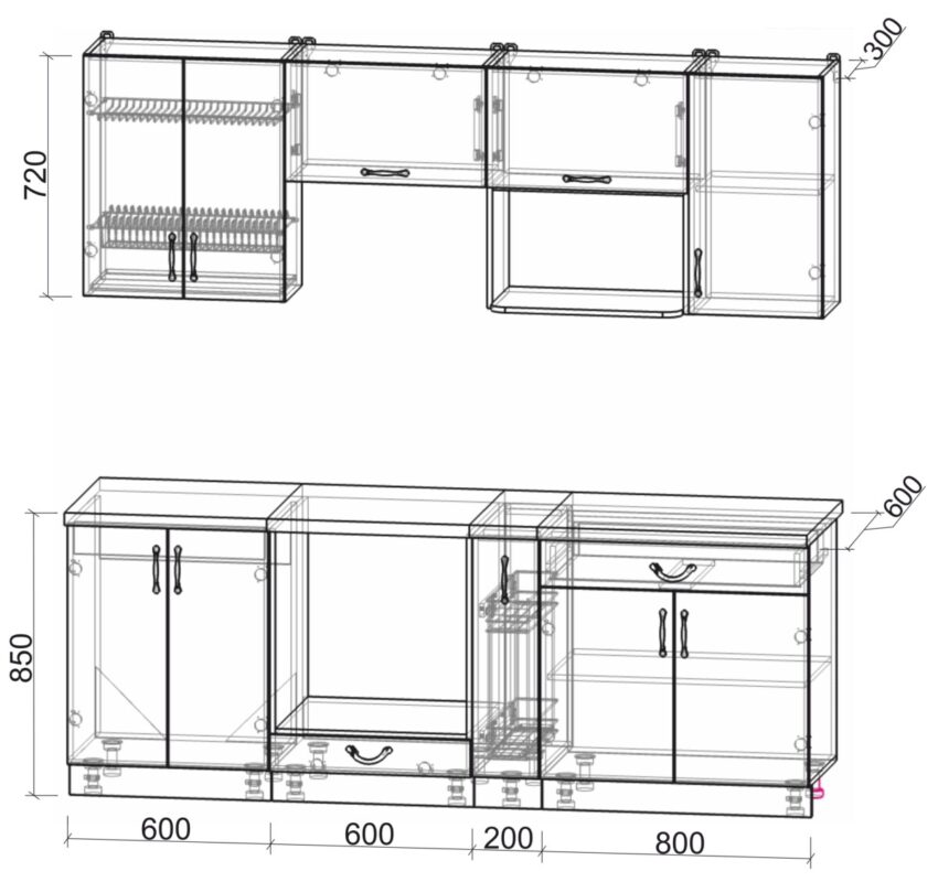 Кухня модульная. Все шкафы отдельностоящие, их можно менять между собой местами. Дополнительно можно приобрести шкафы под вытяжку (500мм или 600мм), встраиваемую духовку или варочную панель, пенал кухонный а так же любой другой шкаф из серии Мила Крафт. Кроме того, комплекты можно полностью собрать модульно, только из тех элементов, которые вам подходят.