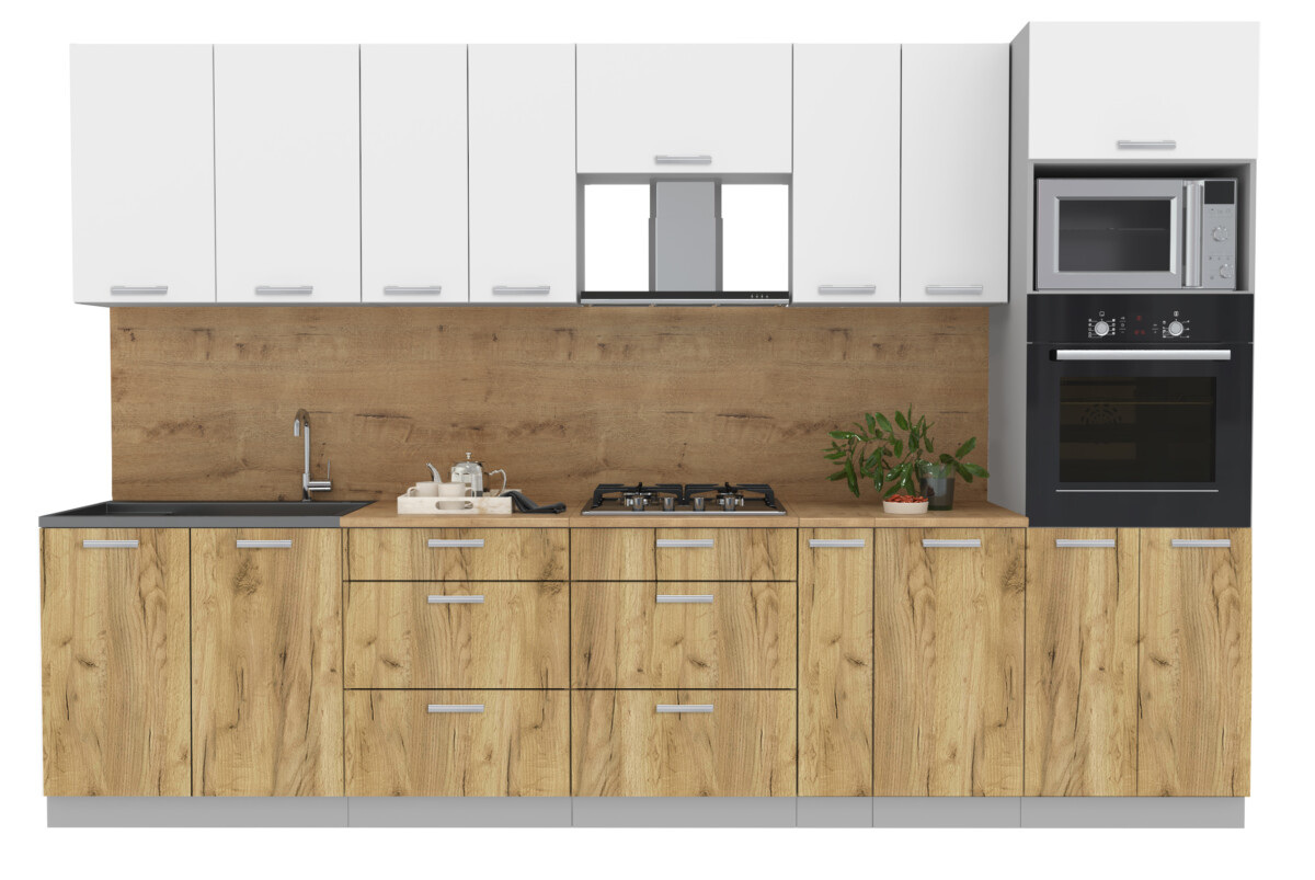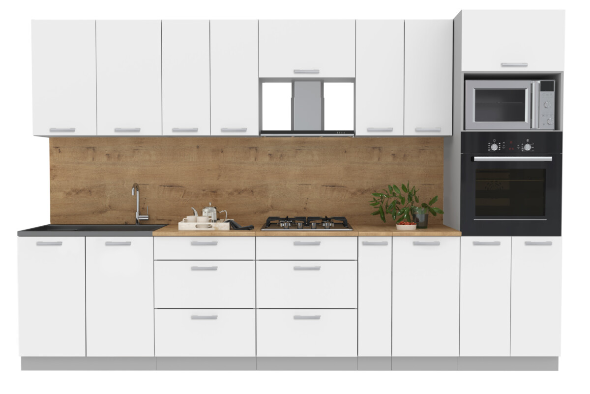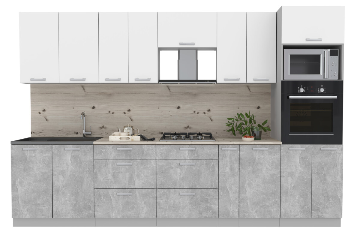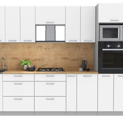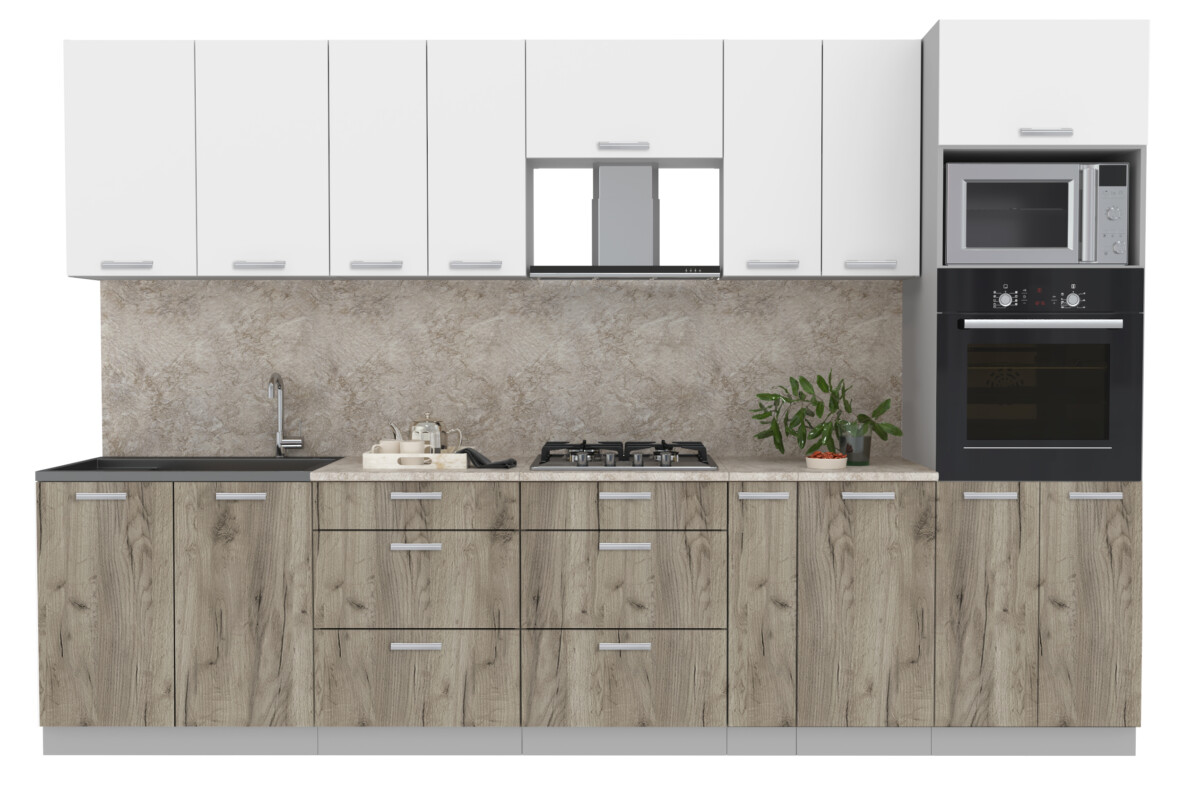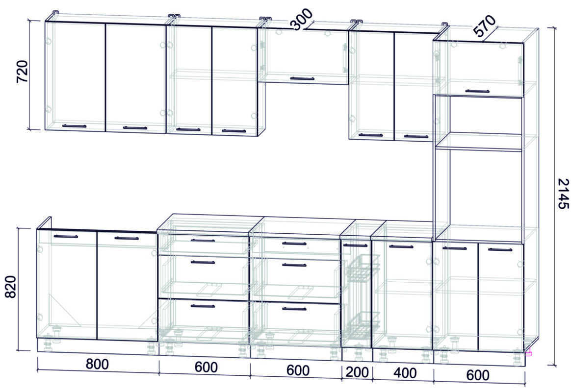 Кухня модульная. Все шкафы отдельностоящие, их можно менять между собой местами. Дополнительно можно приобрести шкафы под вытяжку (500мм или 600мм) и встраиваемую духовку.