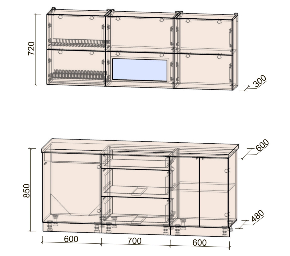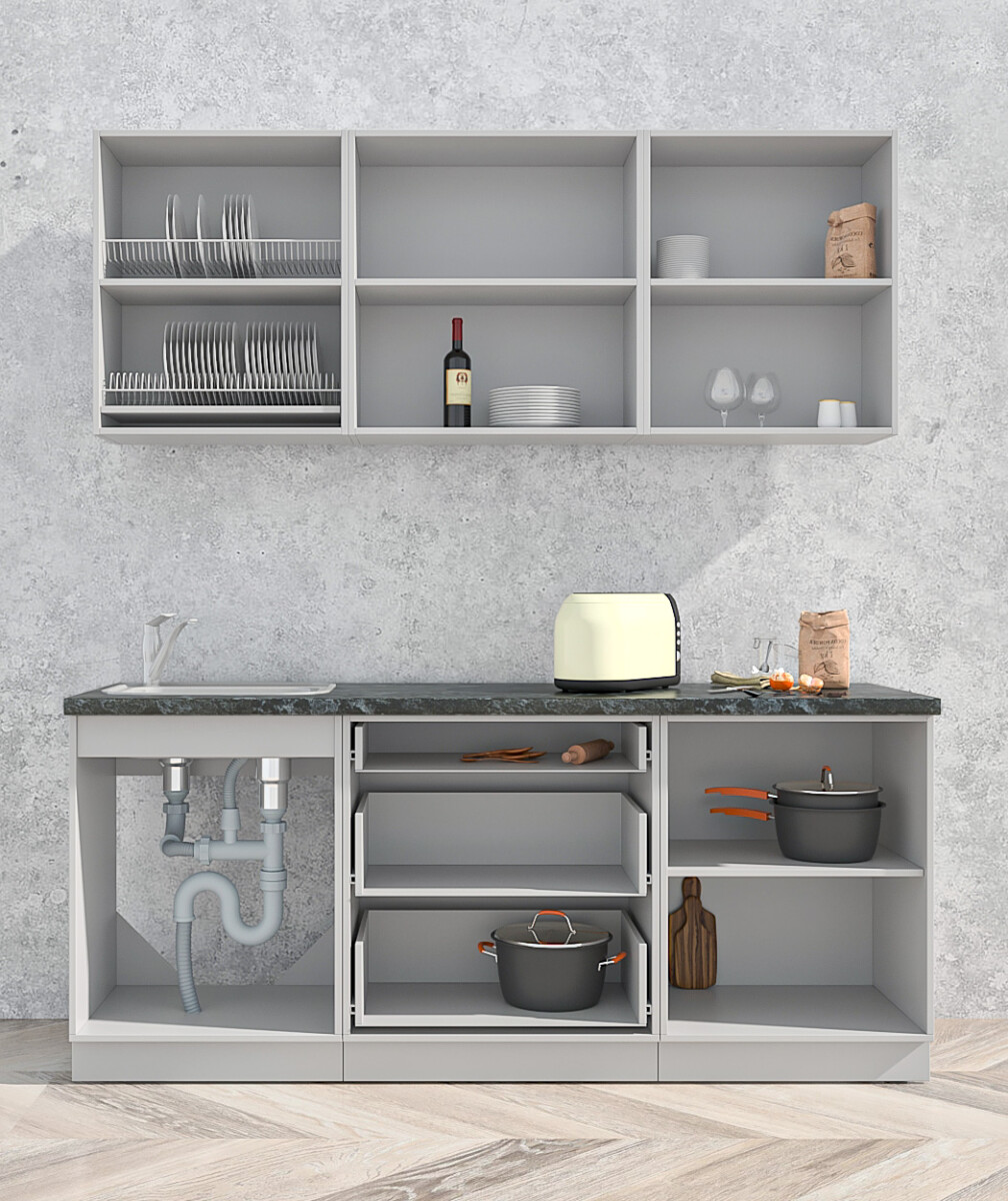Кухня модульная. Все шкафы отдельностоящие, их можно менять между собой местами. Дополнительно можно приобрести шкафы под вытяжку (500мм или 600мм), встраиваемую духовку или варочную панель, пенал кухонный а так же любой другой шкаф из серии Мила Матте. Кроме того, комплекты можно полностью собрать модульно, только из тех элементов, которые вам подходят.