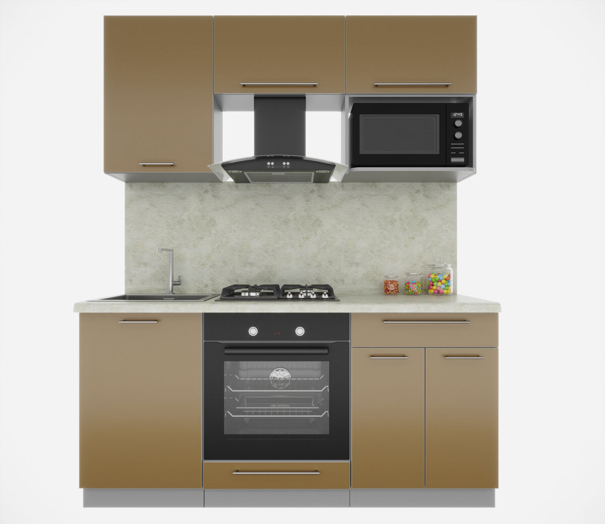 Особенность фасадов кухни: МДФ, облицованный пластиком.