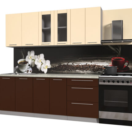 Особенность фасадов кухни: МДФ, облицованный пластиком.