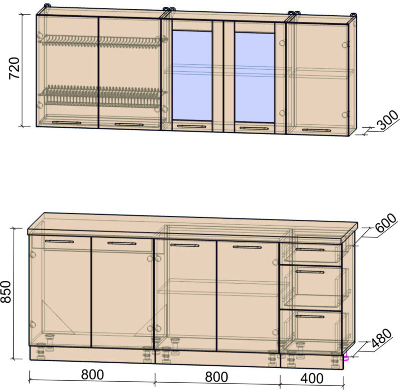 Кухня модульная. Все шкафы отдельностоящие, их можно менять между собой местами. Дополнительно можно приобрести шкафы под вытяжку (500мм или 600мм), встраиваемую духовку или варочную панель, пенал кухонный а так же любой другой шкаф из серии Мила Пластик. Кроме того, комплекты можно полностью собрать модульно, только из тех элементов, которые вам подходят.