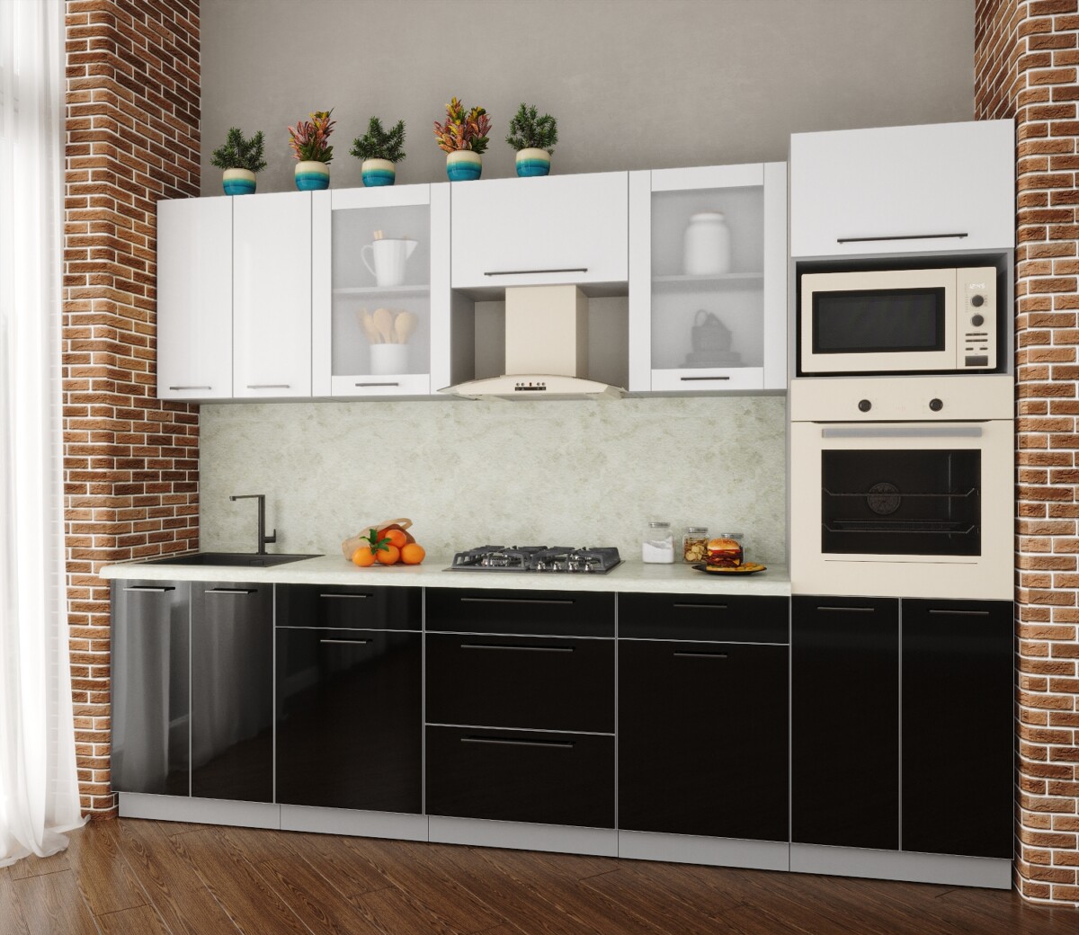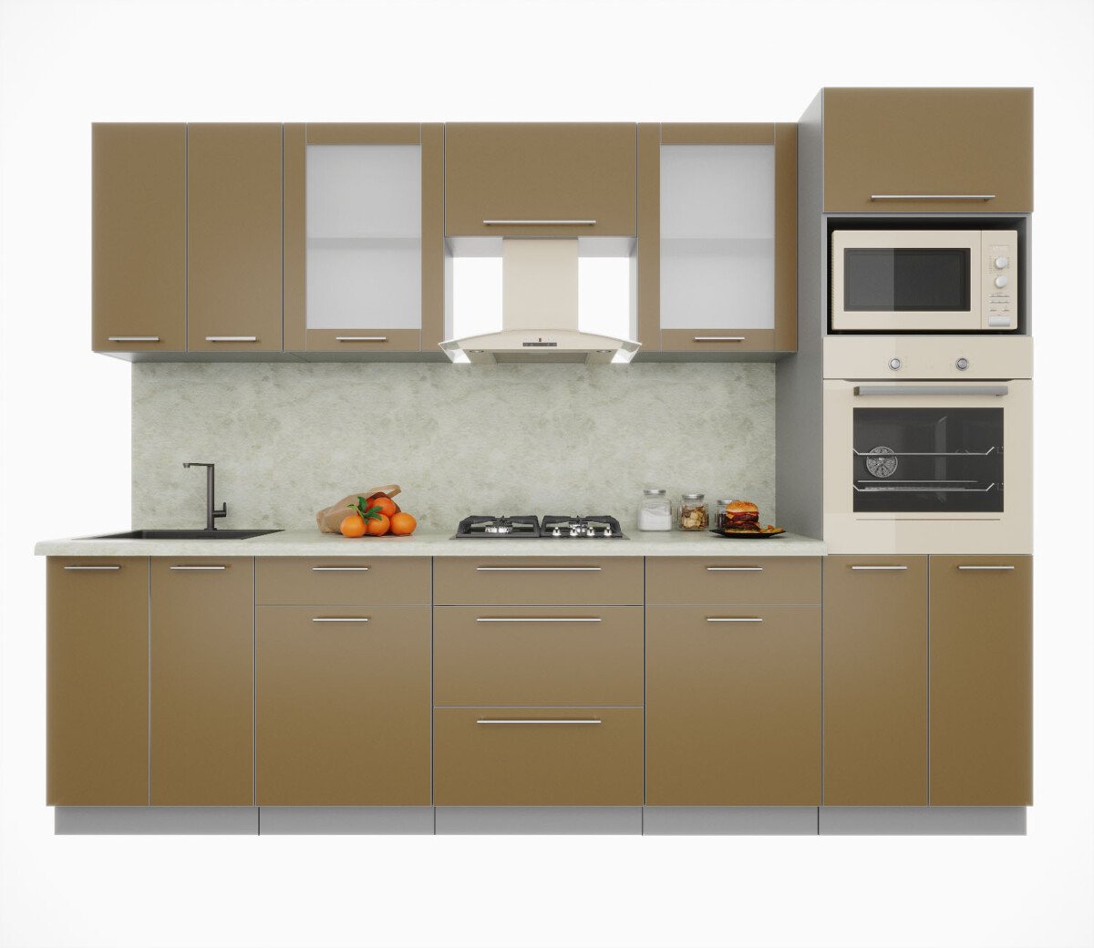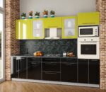 Особенность фасадов кухни: МДФ, облицованный пластиком.