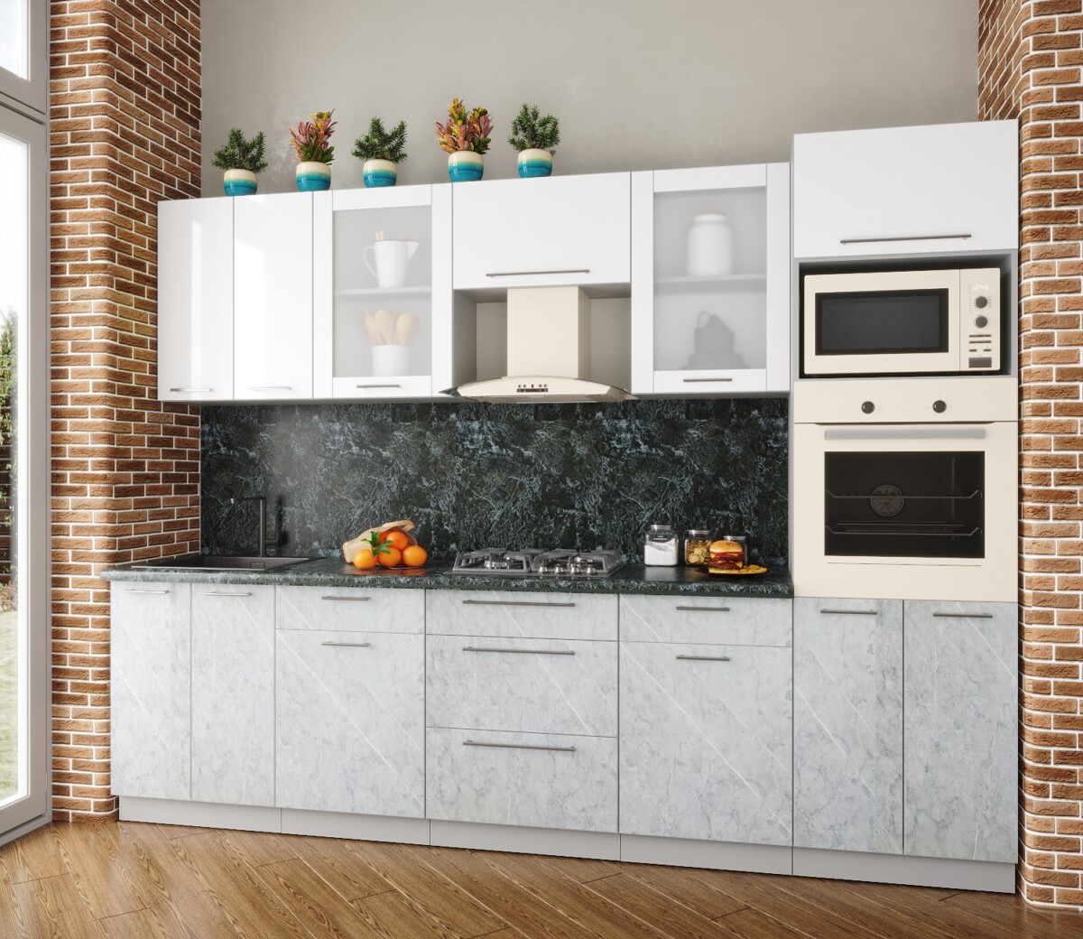 Кухня модульная. Все шкафы отдельностоящие, их можно менять между собой местами. Дополнительно можно приобрести шкафы под вытяжку (500мм или 600мм), встраиваемую духовку или варочную панель, пенал кухонный а так же любой другой шкаф из серии Мила Пластик. Кроме того, комплекты можно полностью собрать модульно, только из тех элементов, которые вам подходят.
