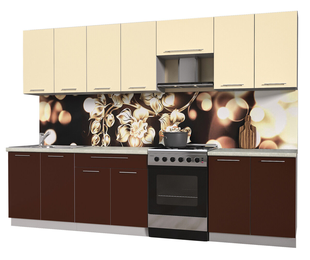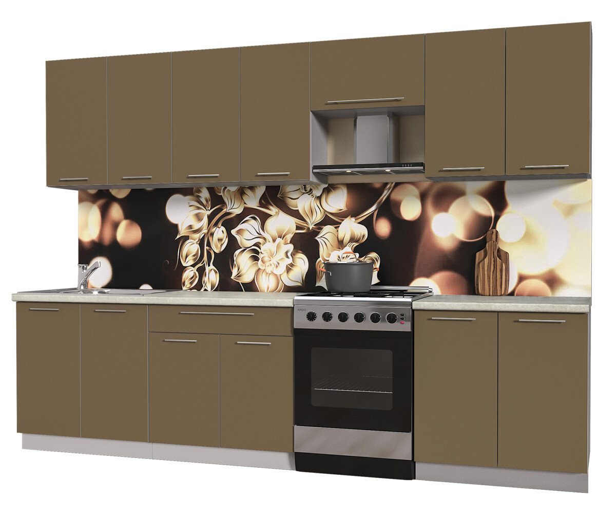 Особенность фасадов кухни: МДФ, облицованный пластиком.