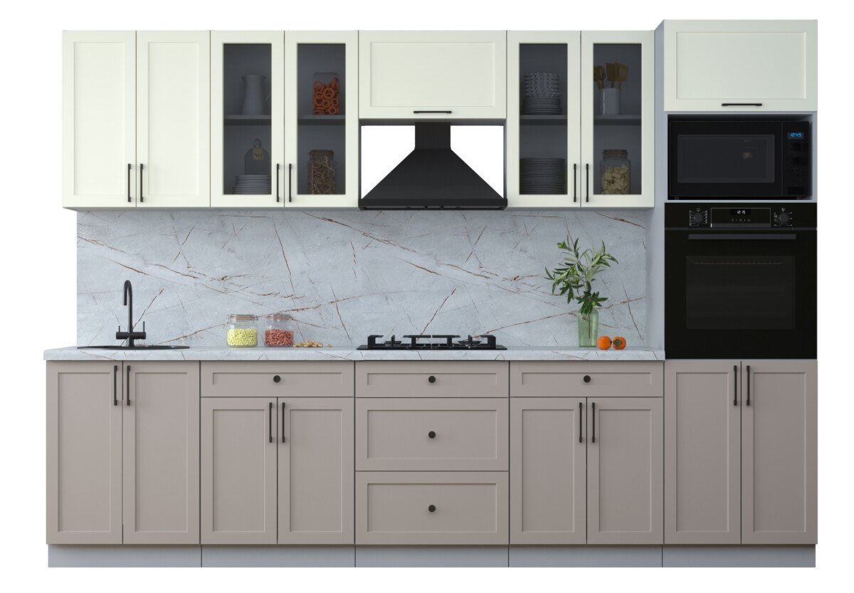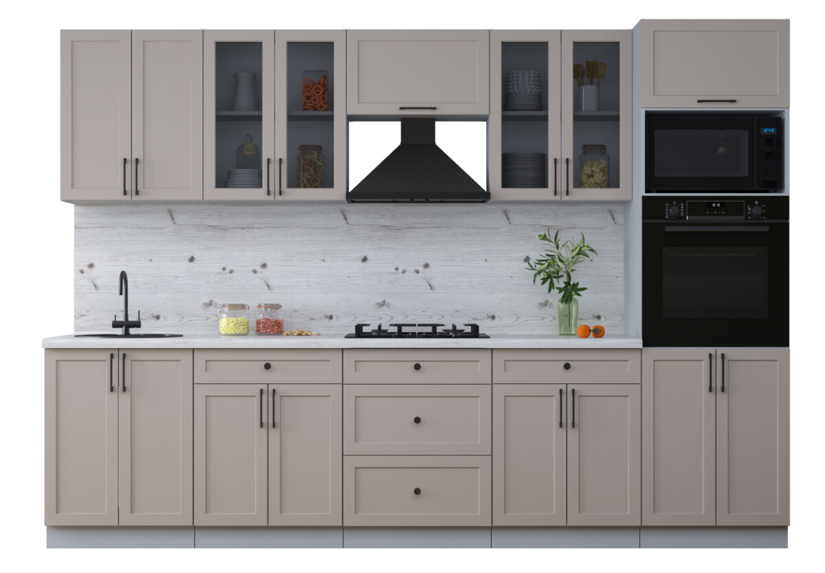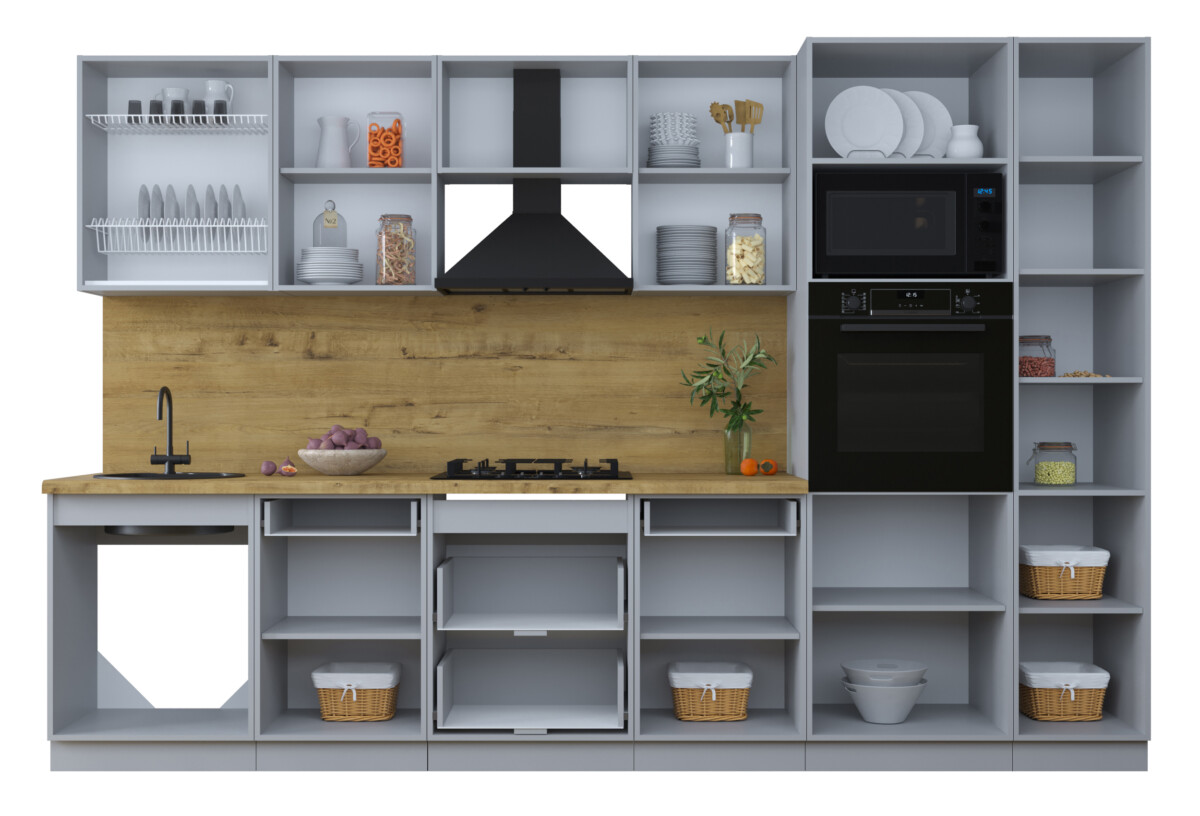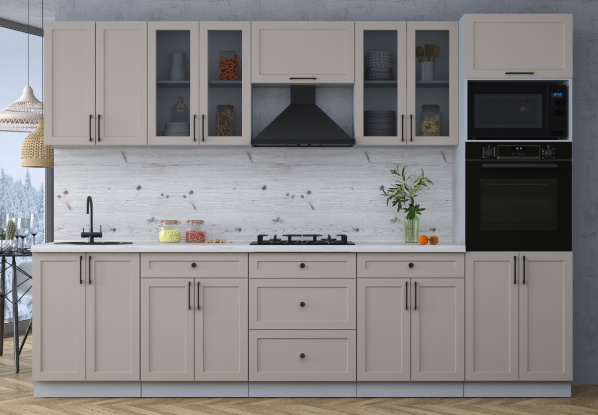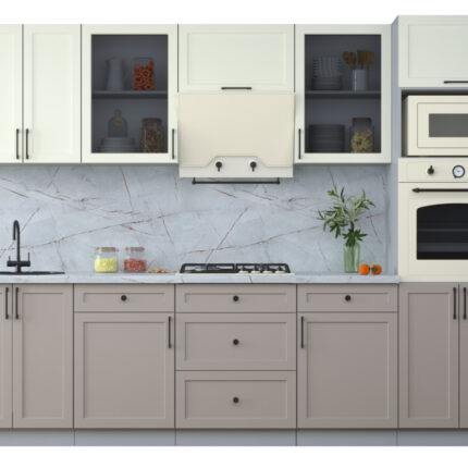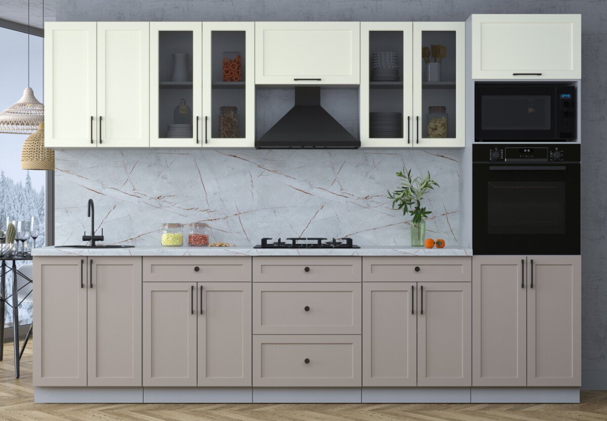 Кухня модульная. Все шкафы отдельностоящие, их можно менять между собой местами. Дополнительно можно приобрести шкафы под вытяжку (500мм или 600мм), встраиваемую духовку или варочную панель, пенал кухонный а так же любой другой шкаф из серии Мила Тренд. Кроме того, комплекты можно полностью собрать модульно, только из тех элементов, которые вам подходят.