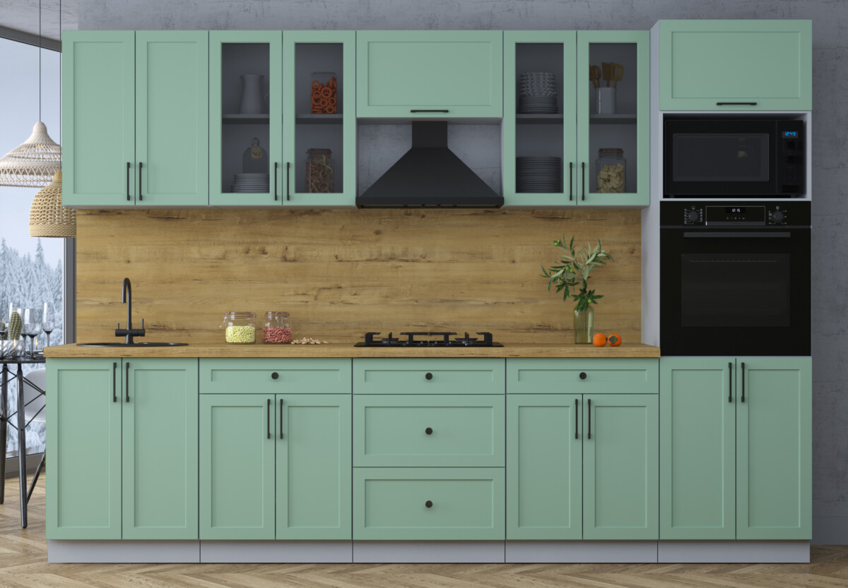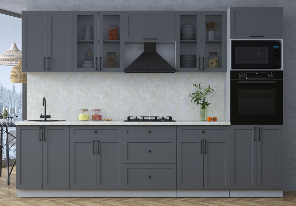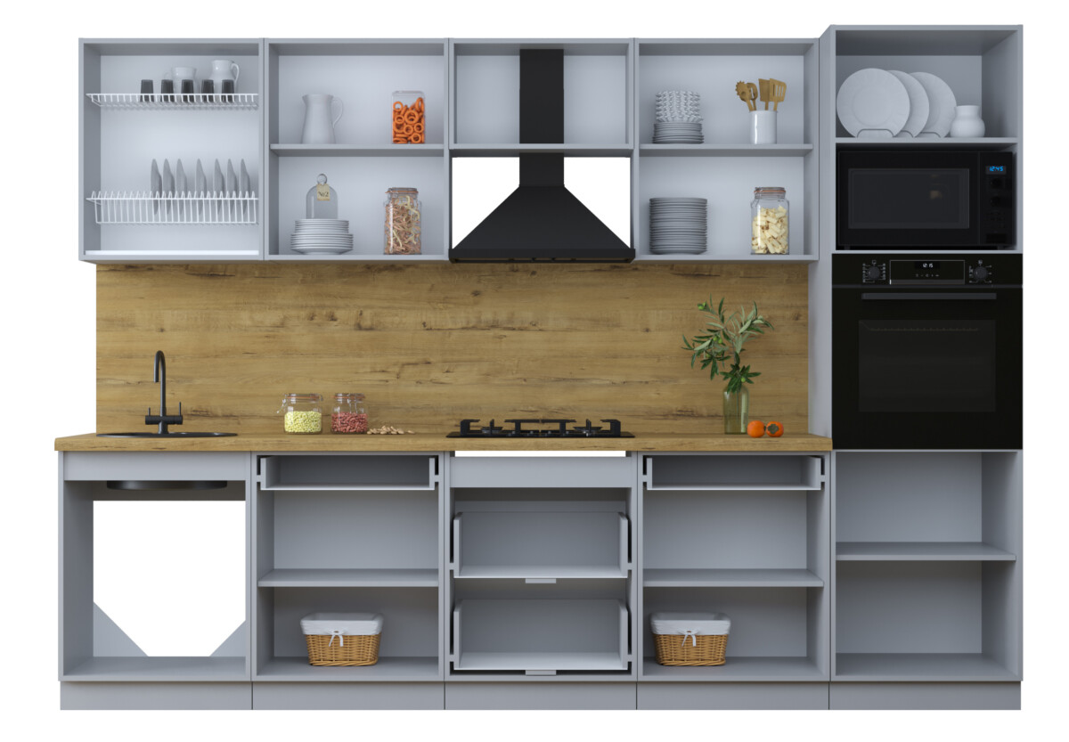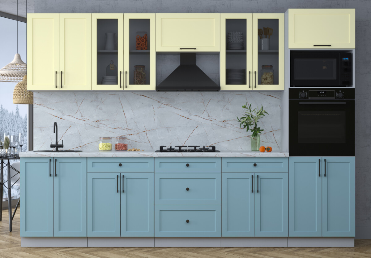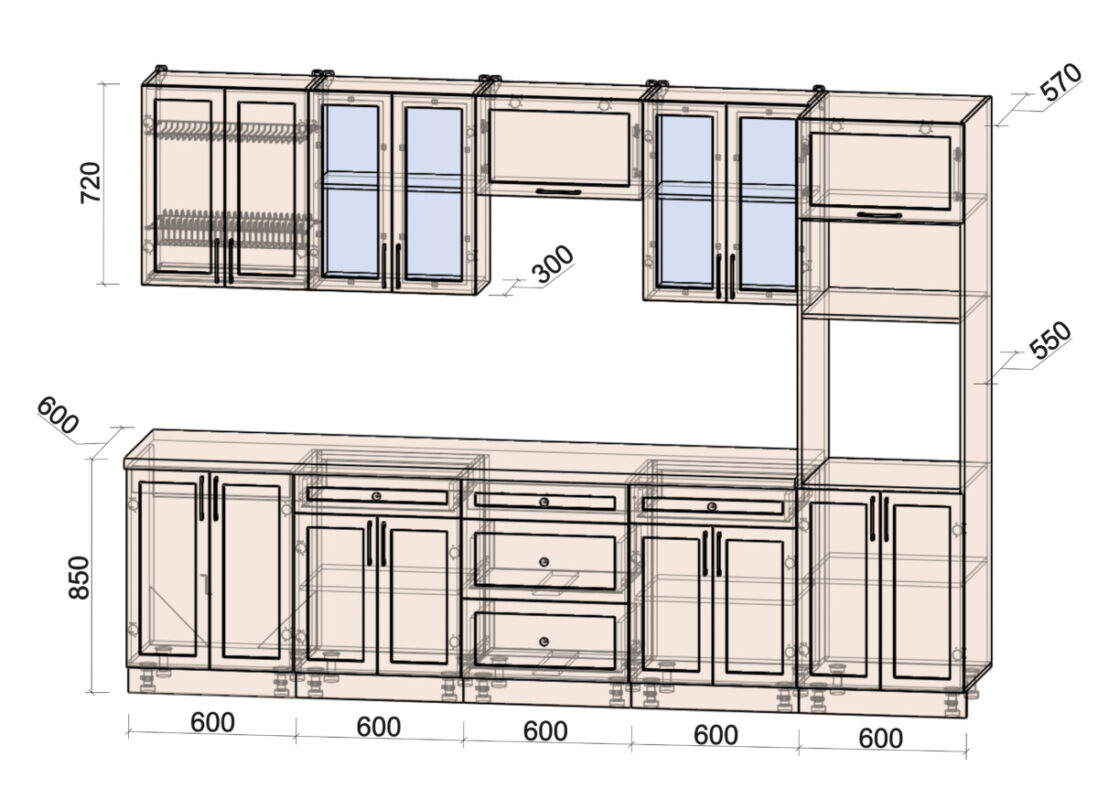 Кухня модульная. Все шкафы отдельностоящие, их можно менять между собой местами. Дополнительно можно приобрести шкафы под вытяжку (500мм или 600мм), встраиваемую духовку или варочную панель, пенал кухонный а так же любой другой шкаф из серии Мила Тренд. Кроме того, комплекты можно полностью собрать модульно, только из тех элементов, которые вам подходят.