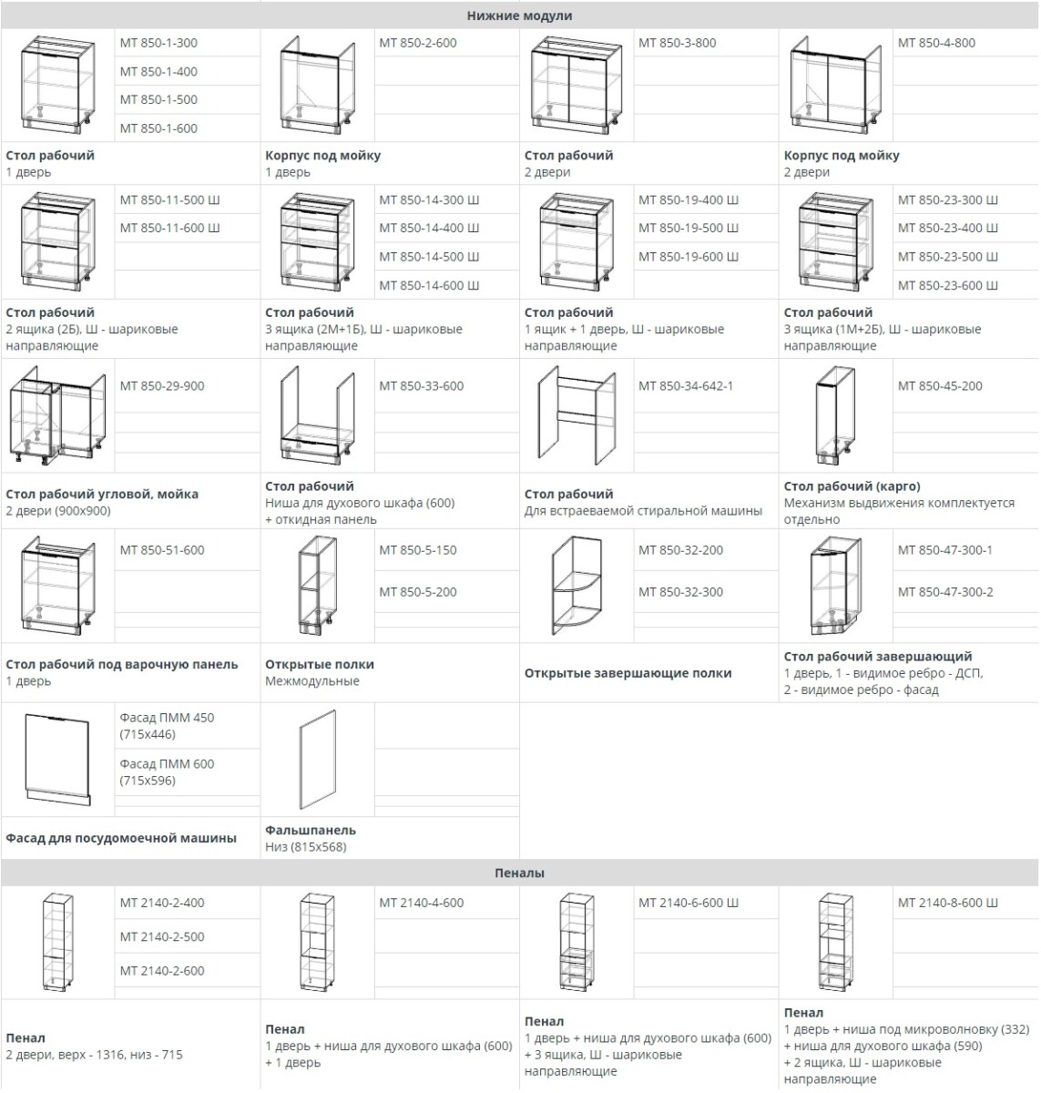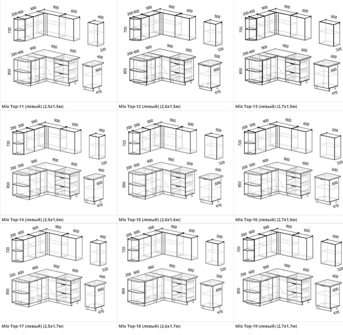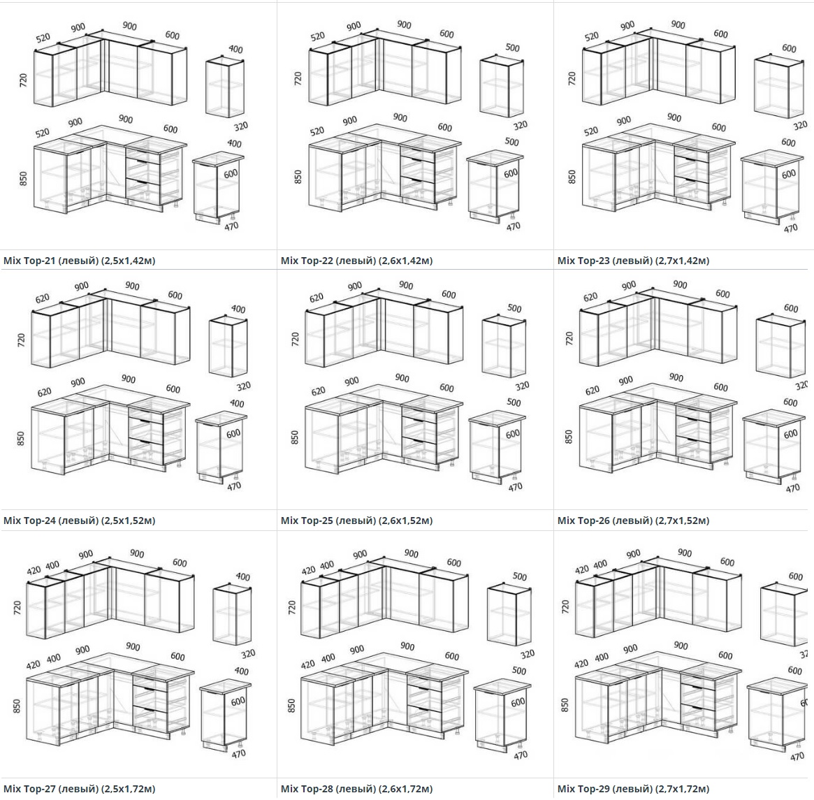 - Высота нижних шкафов 850 мм