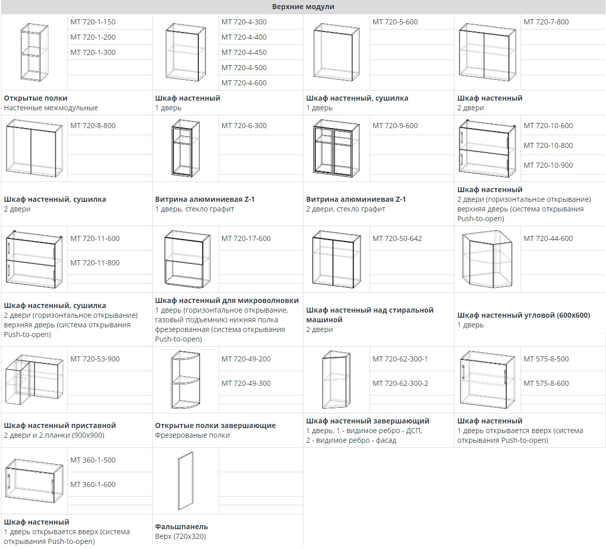 - Высота верхних шкафов 720 мм