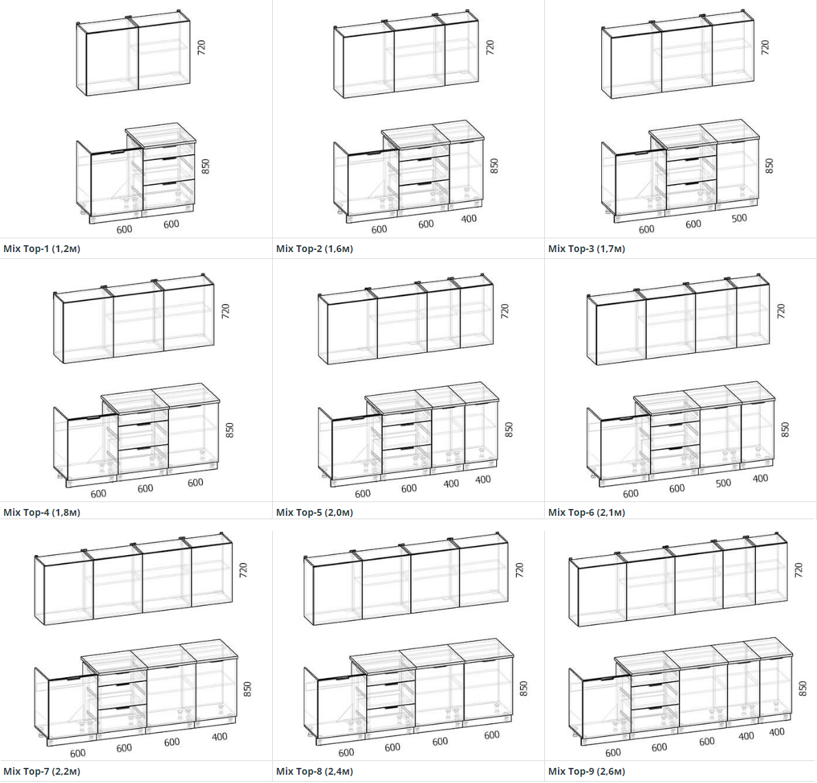 Стоимость указана за кухню Mix Top 33 — 1,7 м