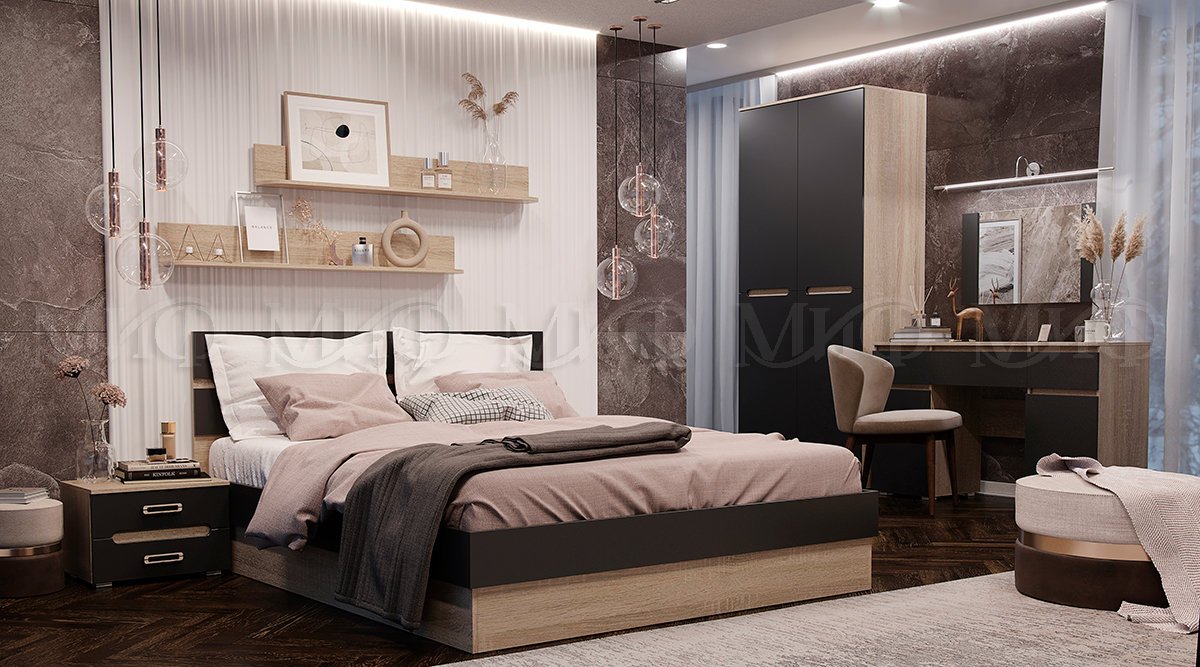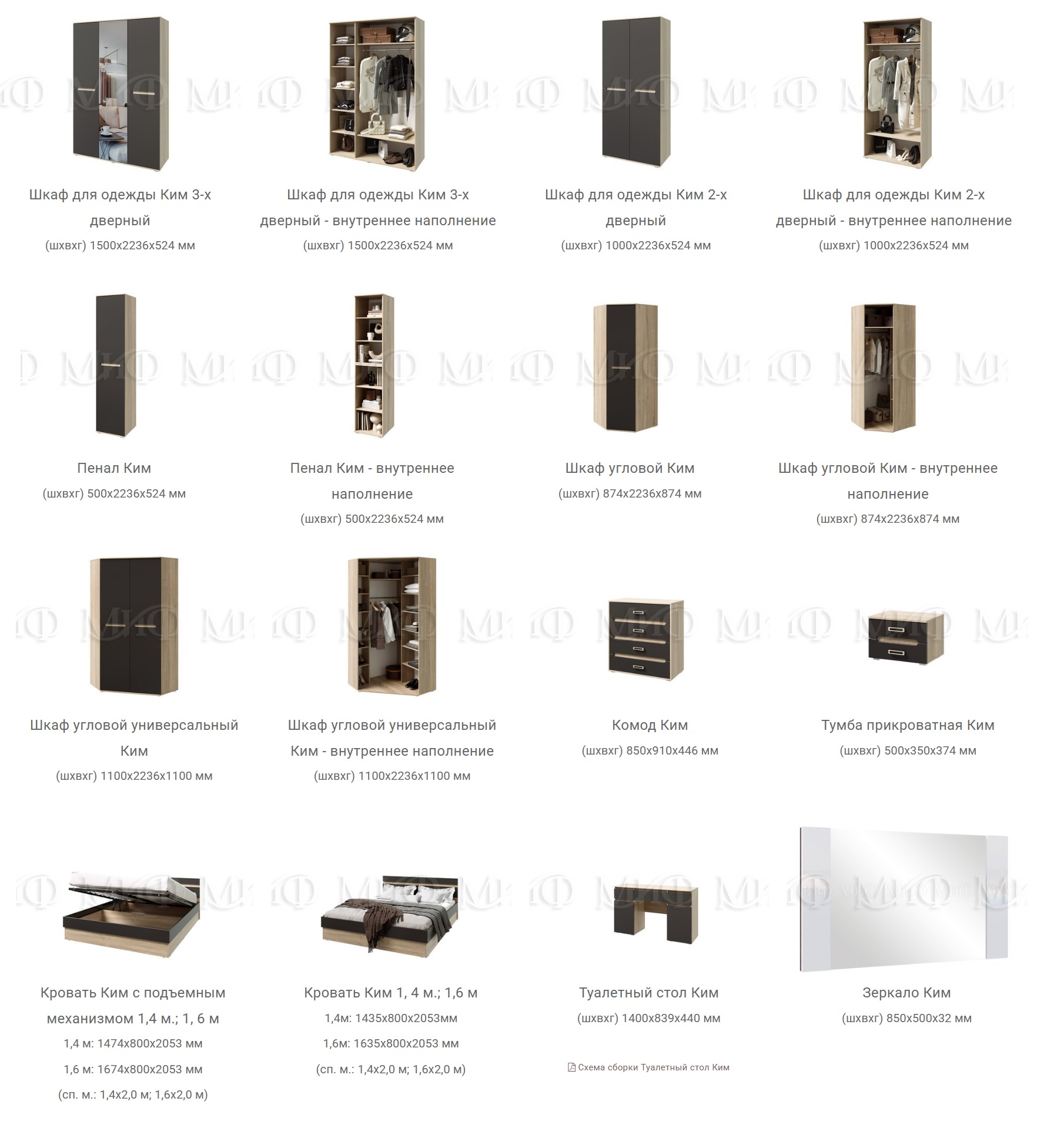 Спальня Ким модульная. Вы можете приобрести как комплект на фото, так и каждый элемент композиции отдельно.