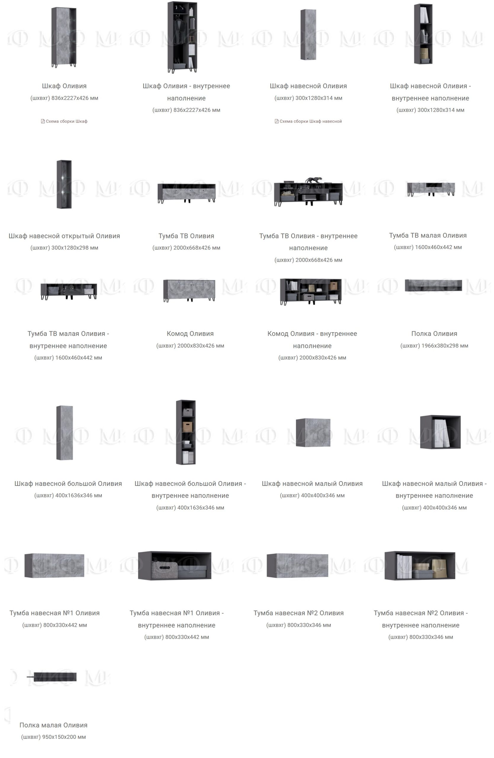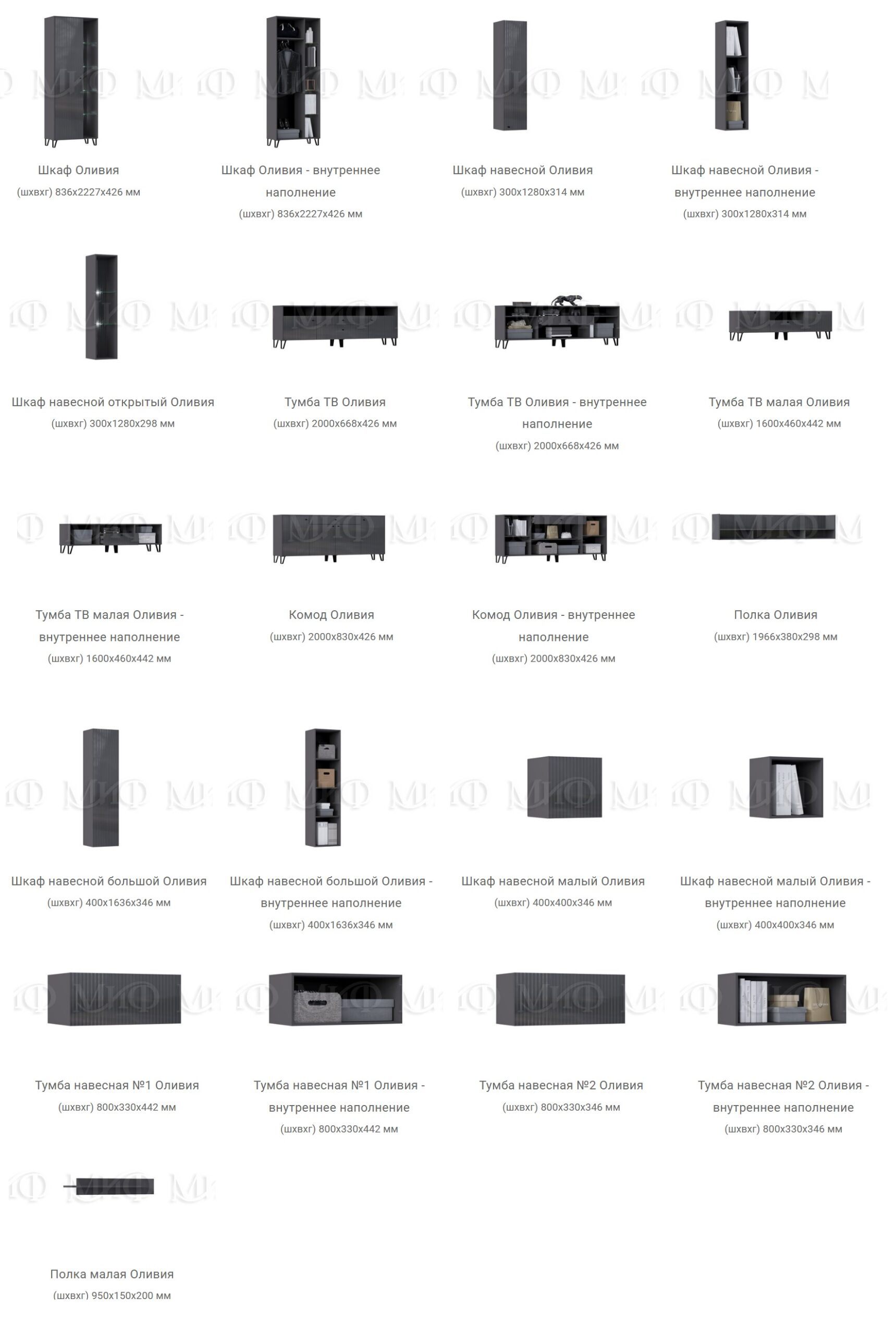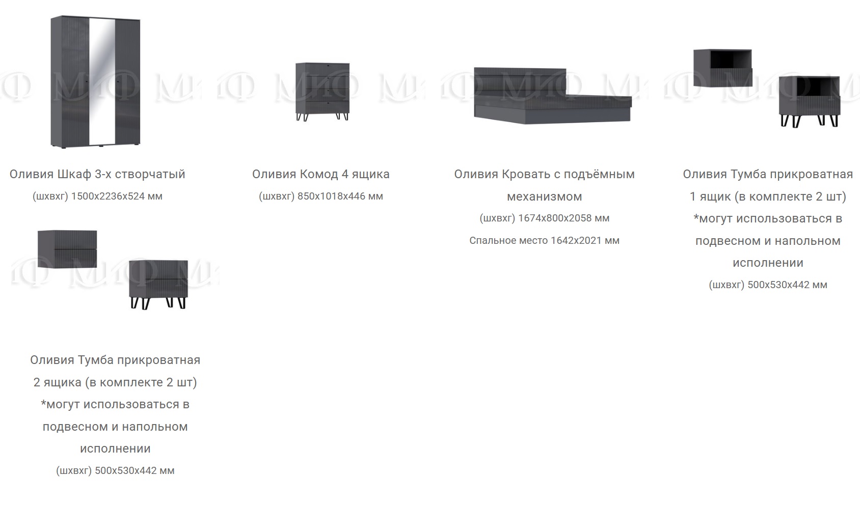 Спальня Оливия модульная. Вы можете приобрести как комплект на фото, так и каждый элемент композиции отдельно.