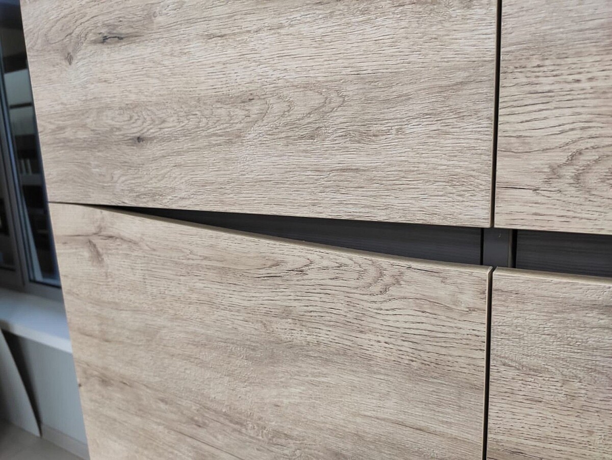 - Тиана изготовлен из комбинированного ЛДСП в цвете Дуб Бонифаций / Вольфрам. элемент из МДФ в цвете Смоки Софт.