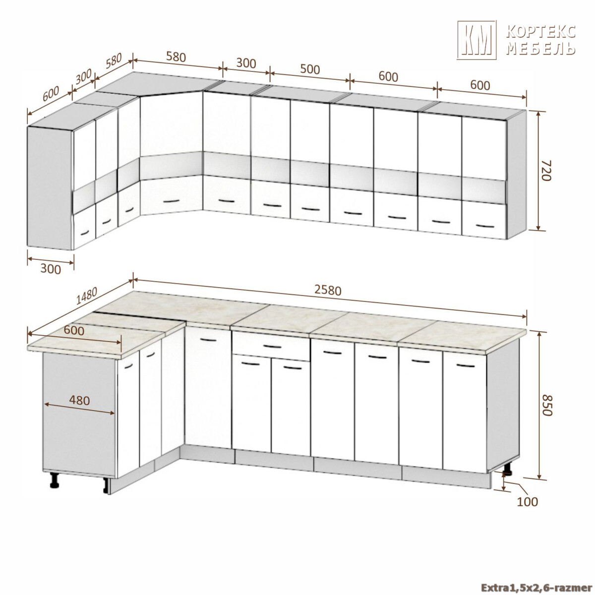 Угловая кухня Корнелия Экстра 1,5х2,6 м
