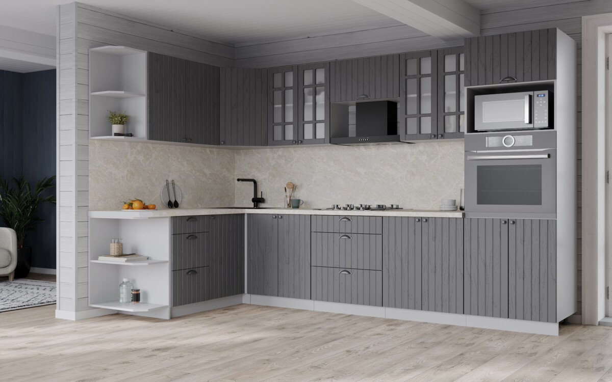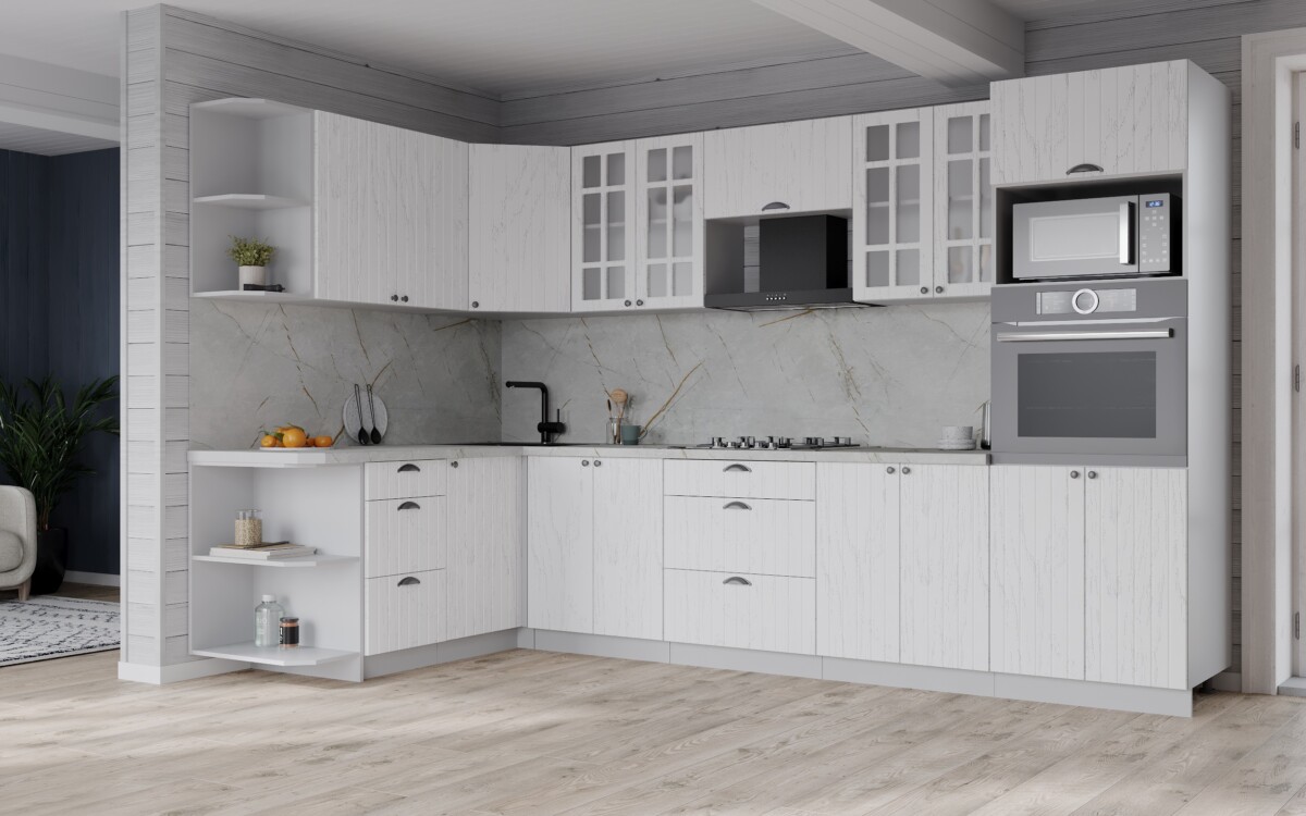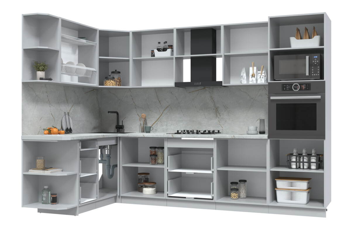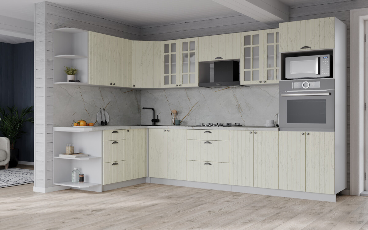Кухня модульная. Все шкафы отдельностоящие, их можно менять между собой местами. Дополнительно можно приобрести шкафы под вытяжку (500мм или 600мм), встраиваемую духовку или варочную панель, пенал кухонный а так же любой другой шкаф из серии Мила Берес. Кроме того, комплекты можно полностью собрать модульно, только из тех элементов, которые вам подходят.