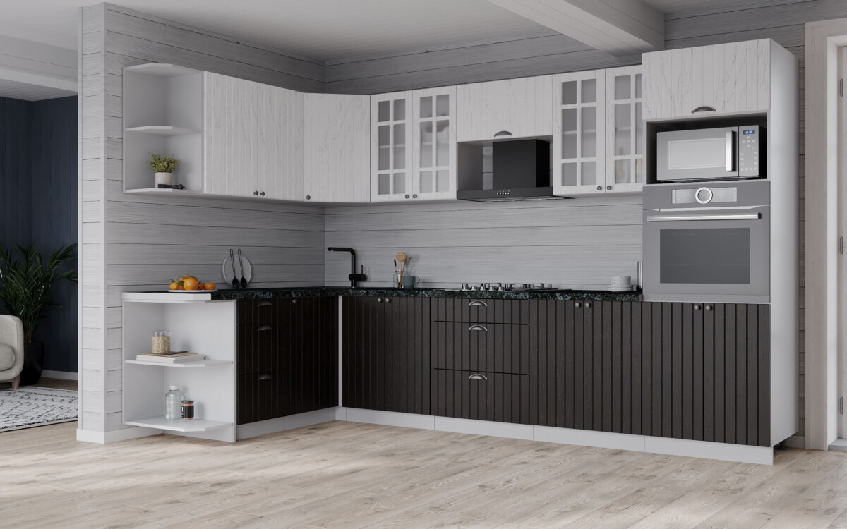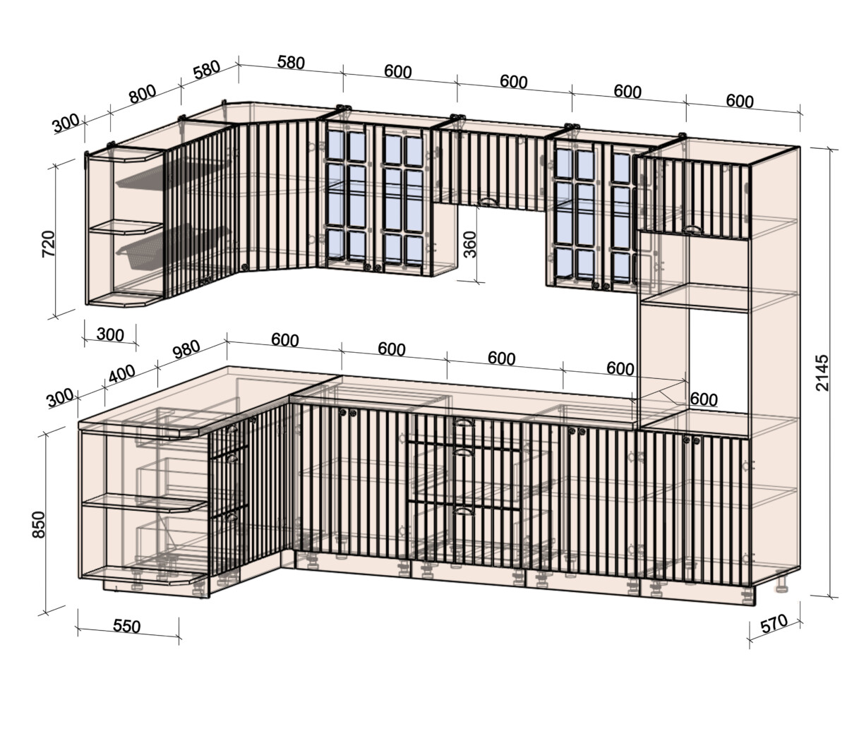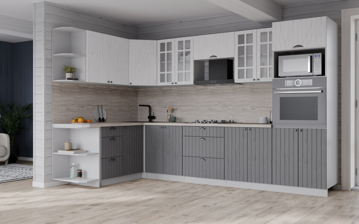 Кухня модульная. Все шкафы отдельностоящие, их можно менять между собой местами. Дополнительно можно приобрести шкафы под вытяжку (500мм или 600мм), встраиваемую духовку или варочную панель, пенал кухонный а так же любой другой шкаф из серии Мила Берес. Кроме того, комплекты можно полностью собрать модульно, только из тех элементов, которые вам подходят.