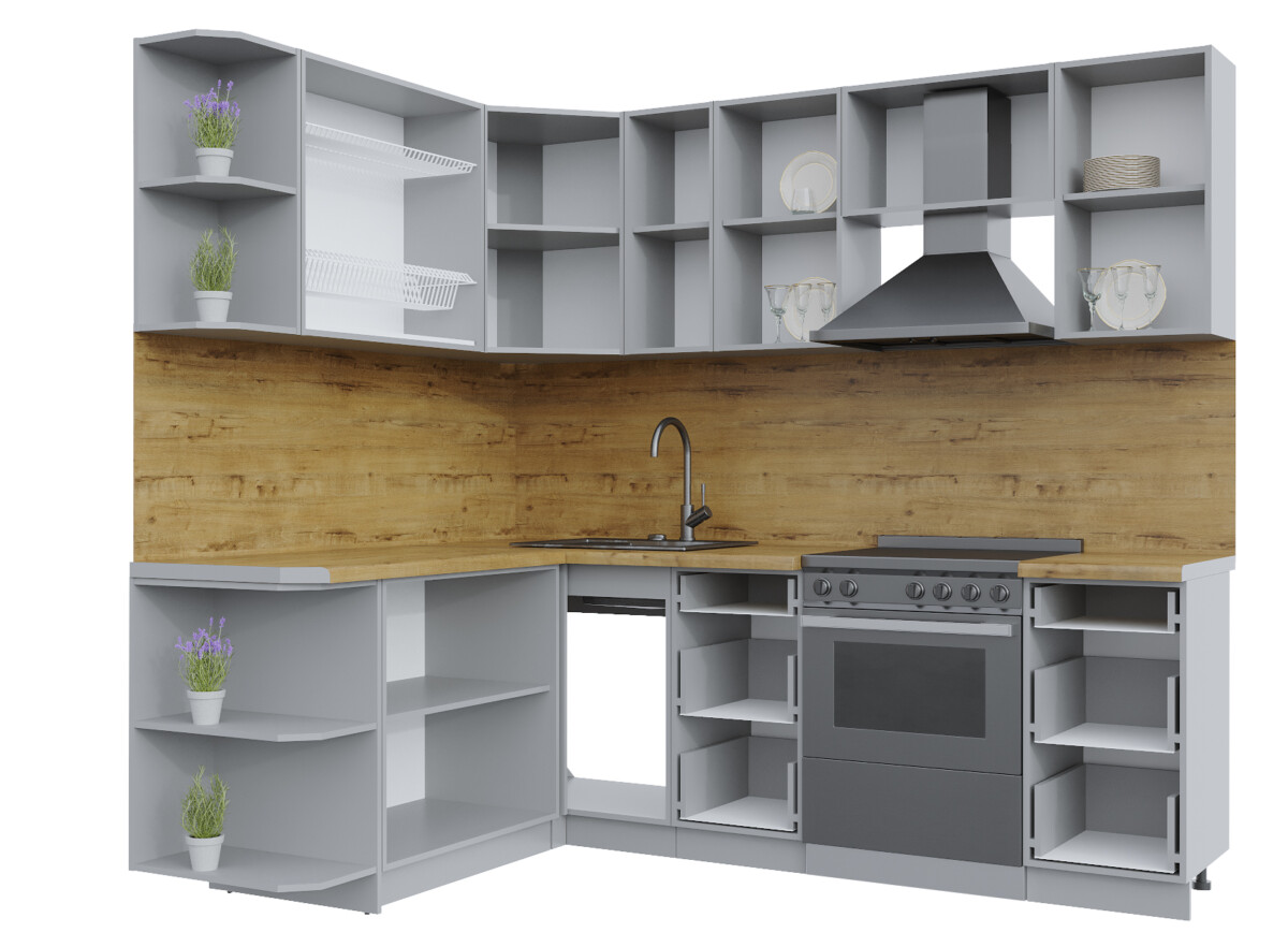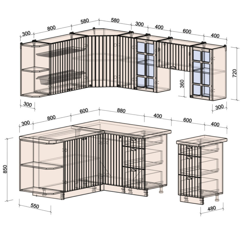 Кухня модульная. Все шкафы отдельностоящие, их можно менять между собой местами. Дополнительно можно приобрести шкафы под вытяжку (500мм или 600мм), встраиваемую духовку или варочную панель, пенал кухонный а так же любой другой шкаф из серии Мила Берес. Кроме того, комплекты можно полностью собрать модульно, только из тех элементов, которые вам подходят.