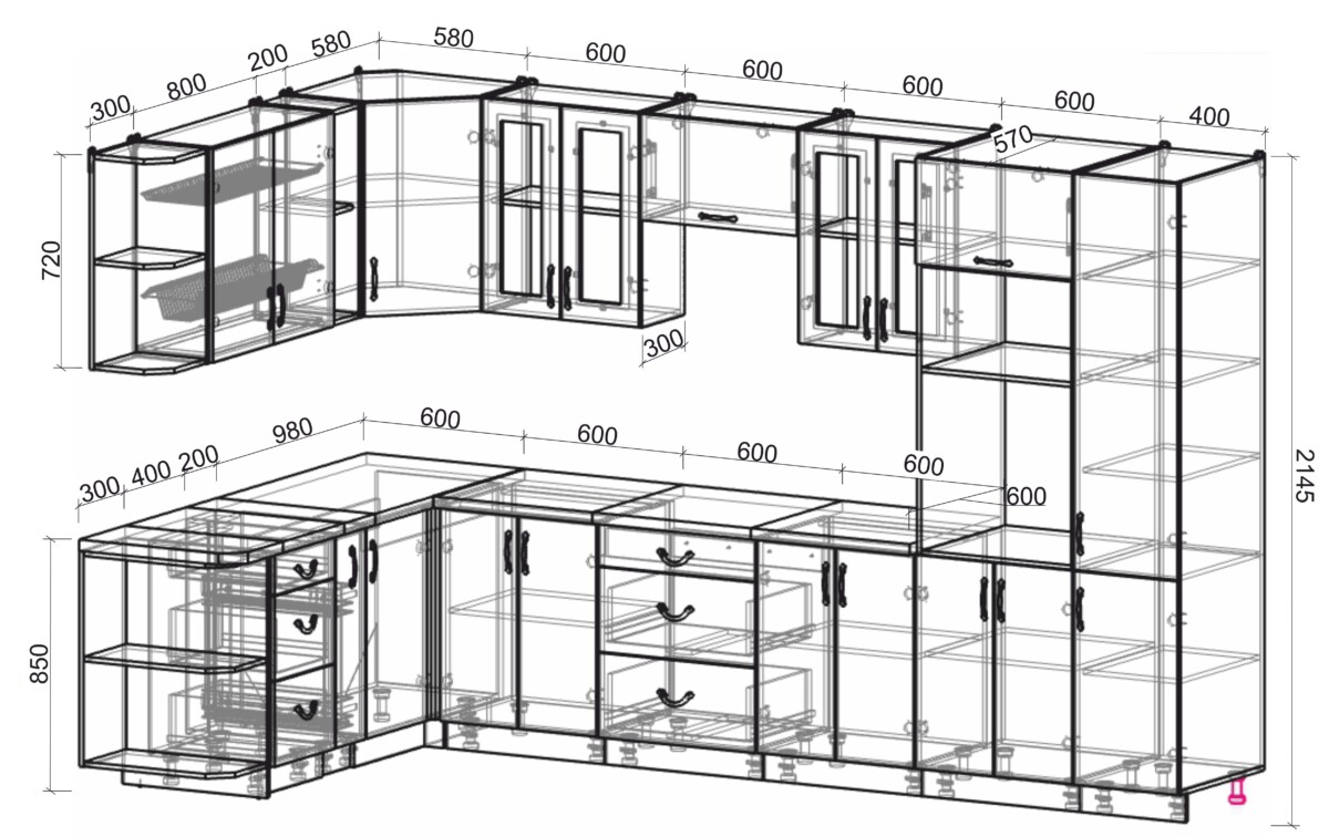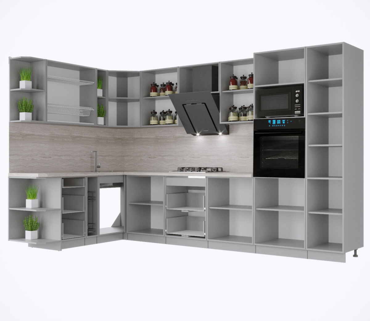 Кухня модульная. Все шкафы отдельностоящие, их можно менять между собой местами. Дополнительно можно приобрести шкафы под вытяжку (500мм или 600мм), встраиваемую духовку или варочную панель, пенал кухонный а так же любой другой шкаф из серии Мила Крафт. Кроме того, комплекты можно полностью собрать модульно, только из тех элементов, которые вам подходят.