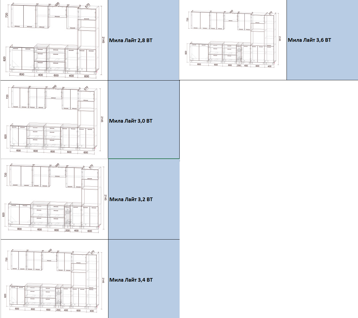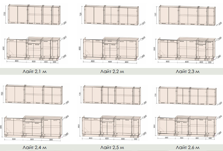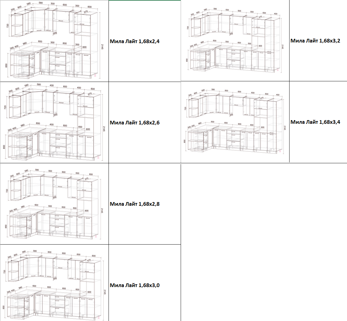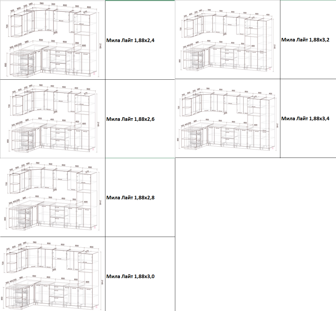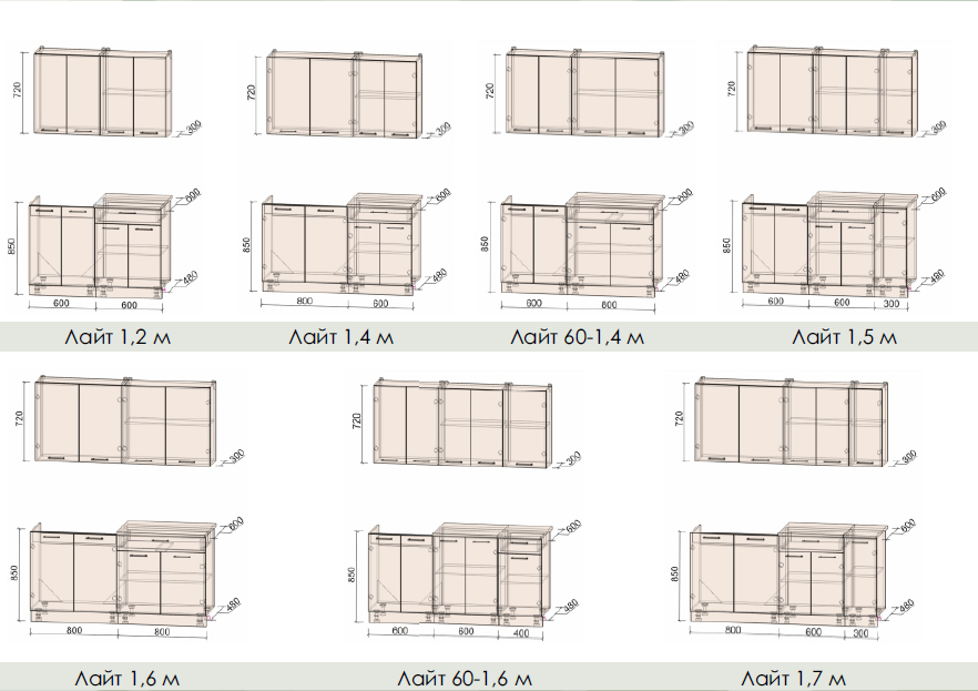 Кухня модульная. Все шкафы отдельностоящие, их можно менять между собой местами. Дополнительно можно приобрести шкафы под вытяжку (500мм или 600мм) и встраиваемую духовку.