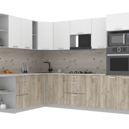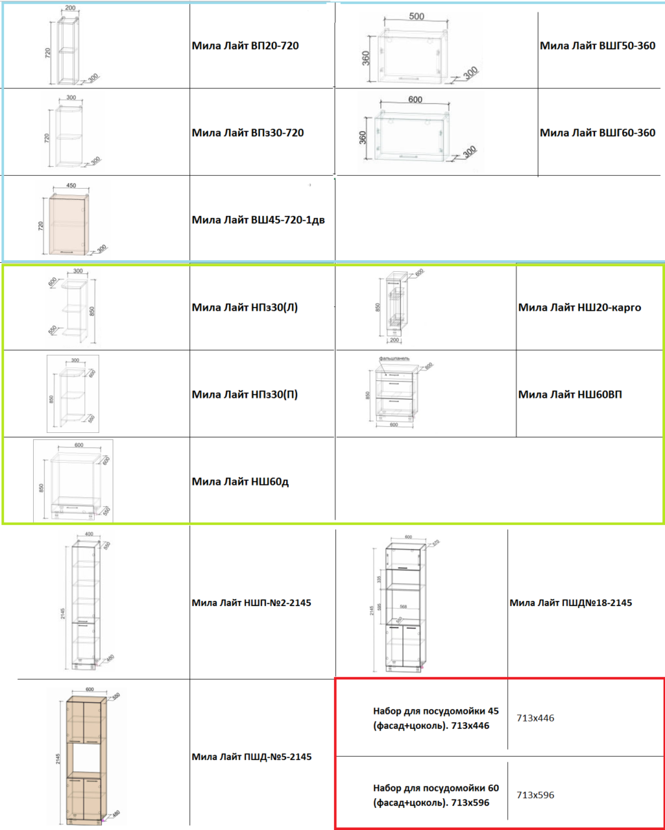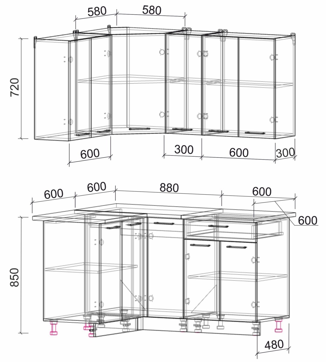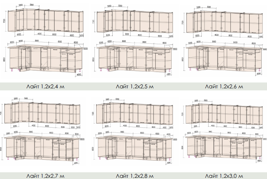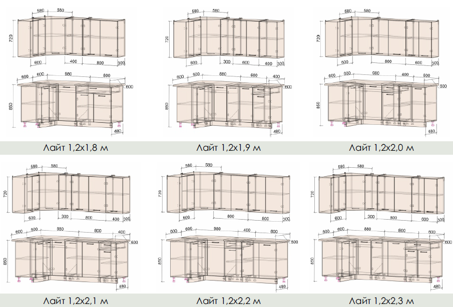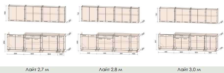 Кухня модульная. Все шкафы отдельностоящие, их можно менять между собой местами. Дополнительно можно приобрести шкафы под вытяжку (500мм или 600мм) и встраиваемую духовку.