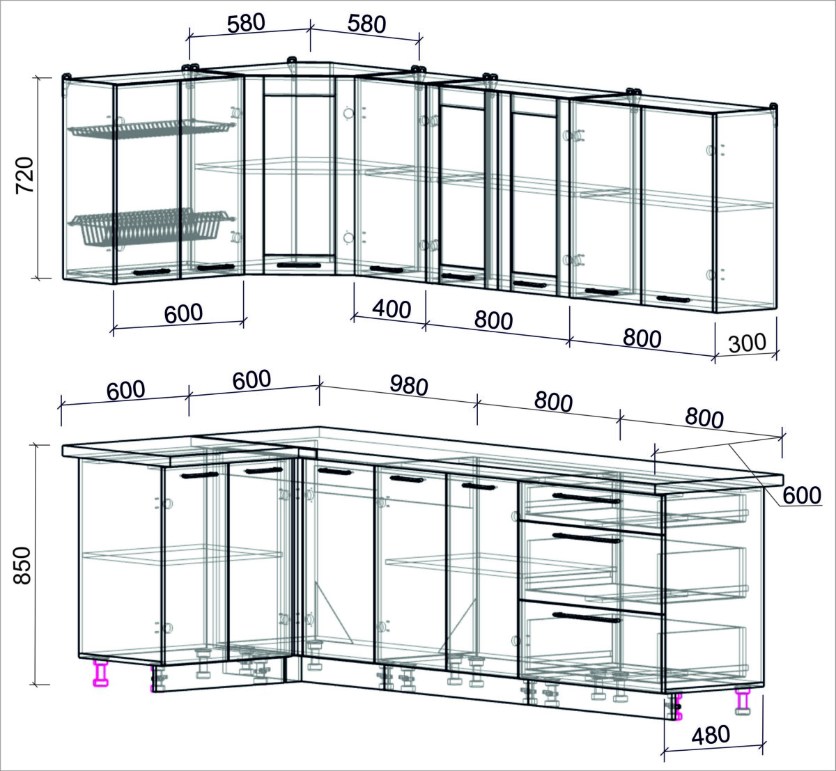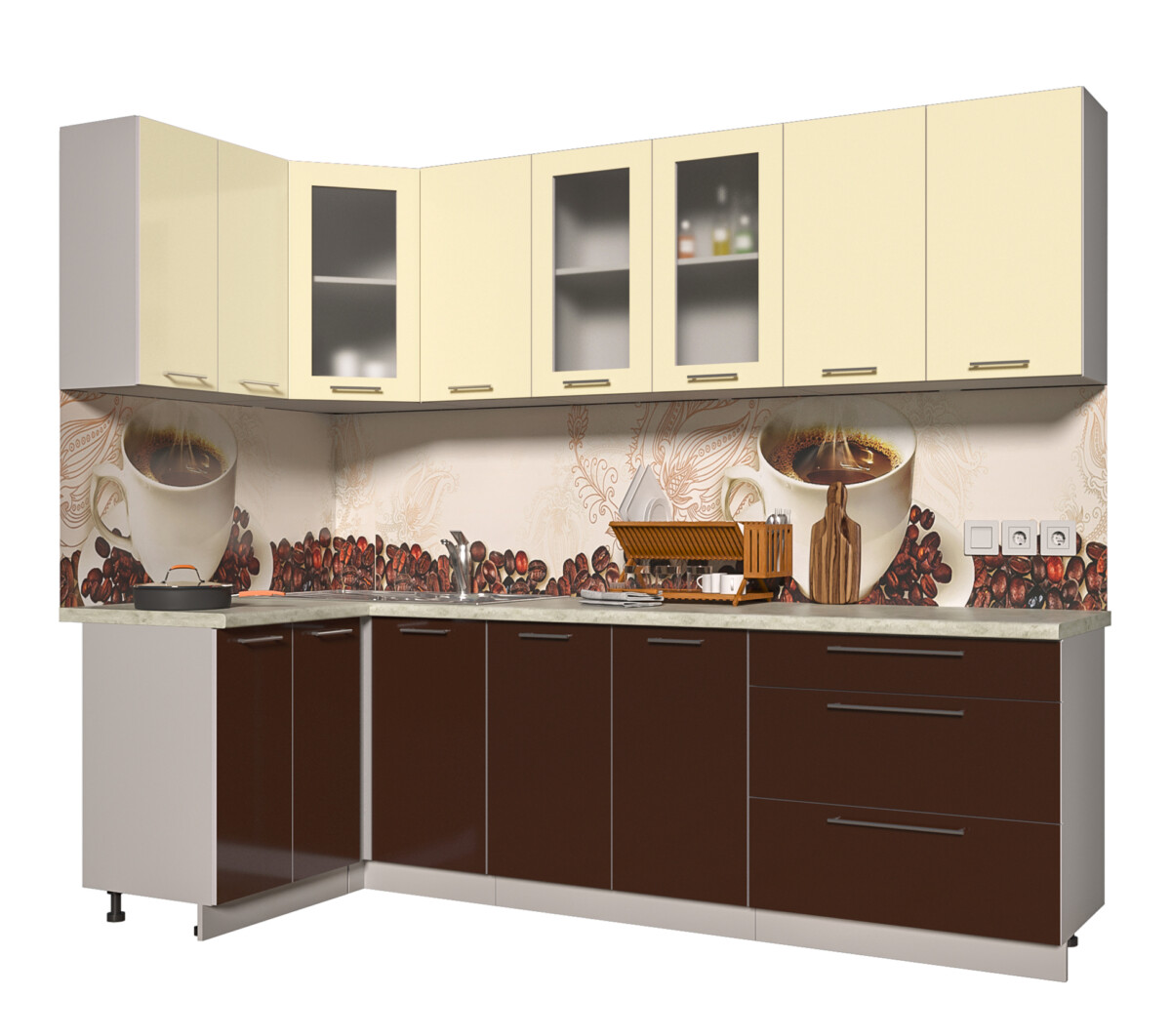 Угловая кухня Мила Пластик 1,2х2,6 м