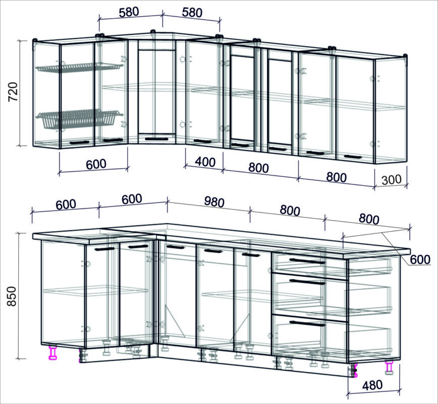 Кухня модульная. Все шкафы отдельностоящие, их можно менять между собой местами. Дополнительно можно приобрести шкафы под вытяжку (500мм или 600мм), встраиваемую духовку или варочную панель, пенал кухонный а так же любой другой шкаф из серии Мила Пластик. Кроме того, комплекты можно полностью собрать модульно, только из тех элементов, которые вам подходят.
